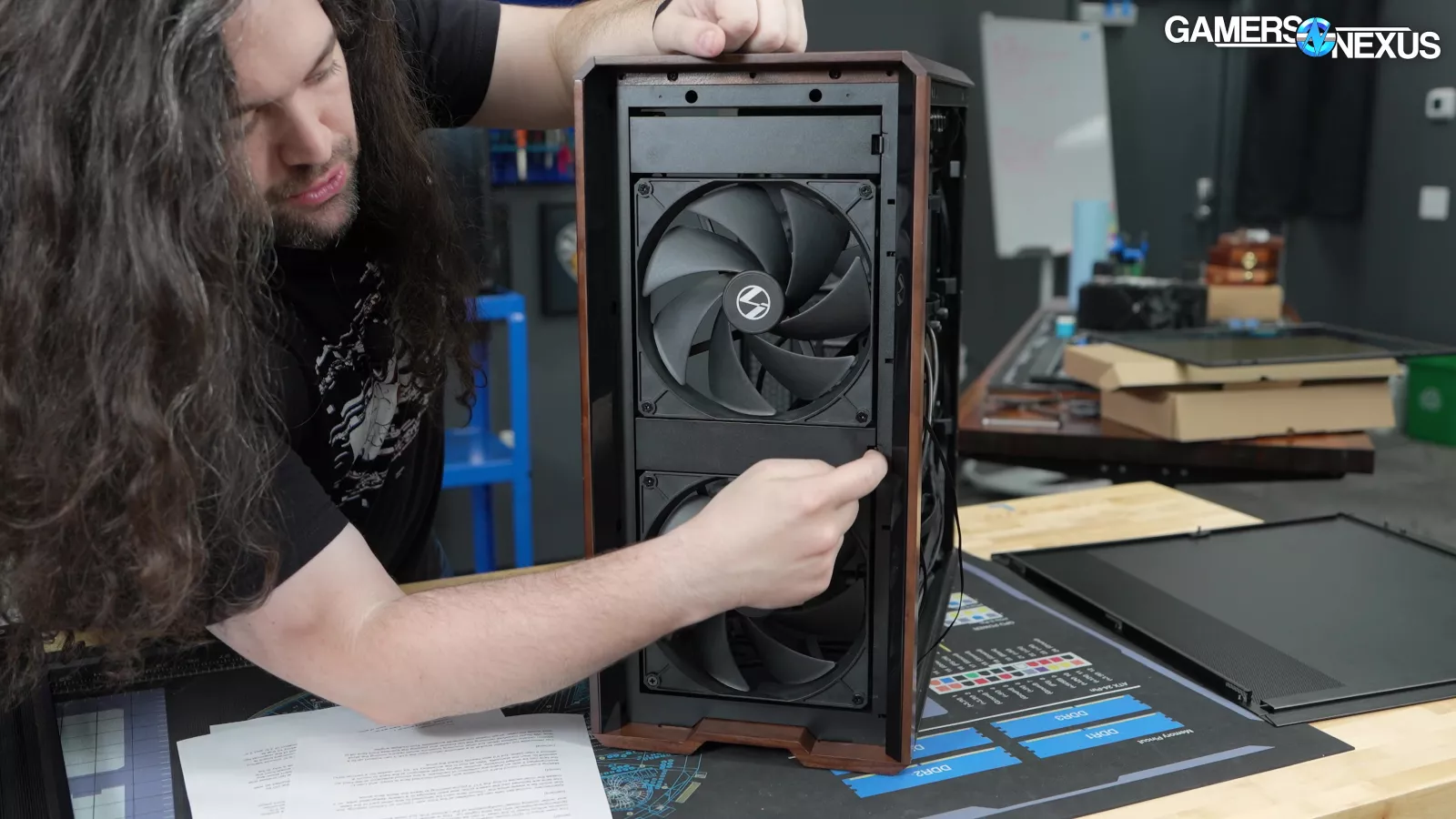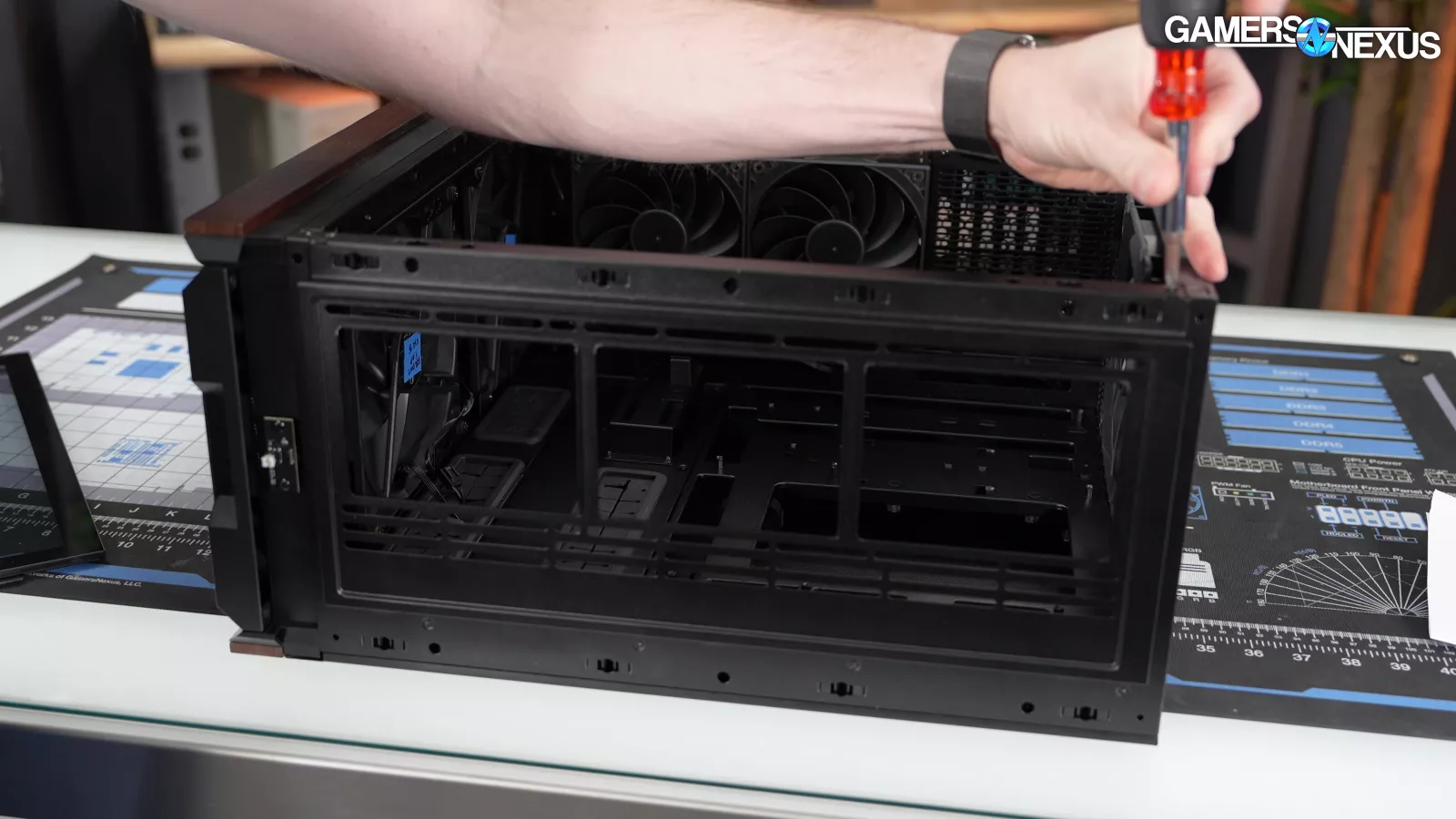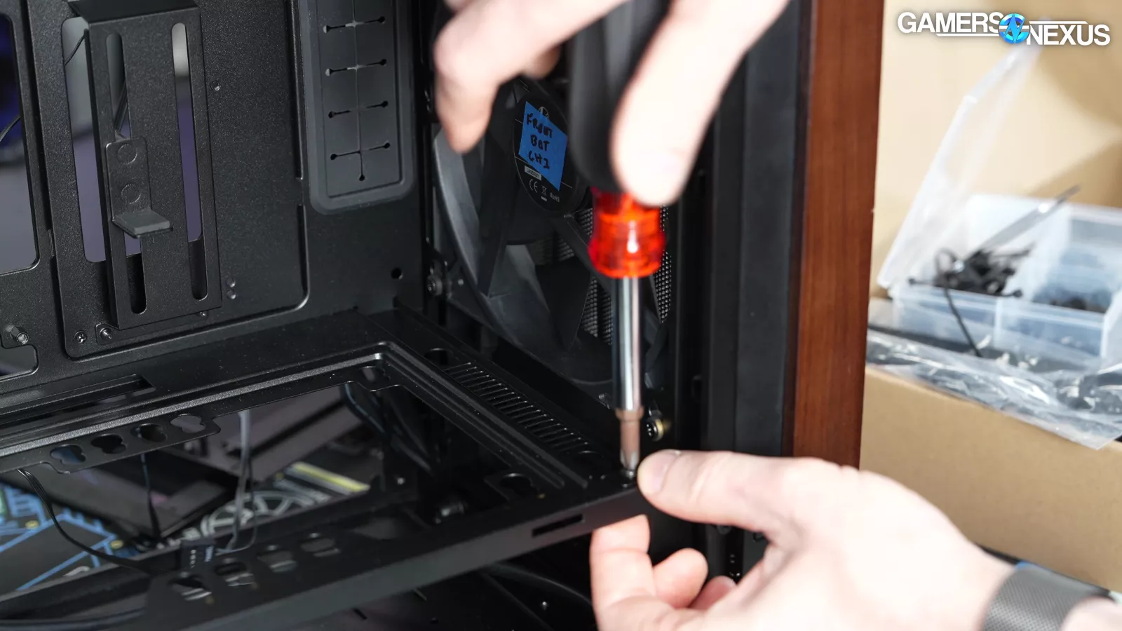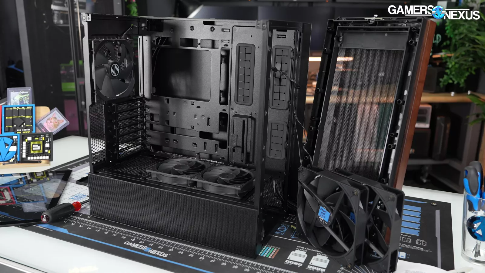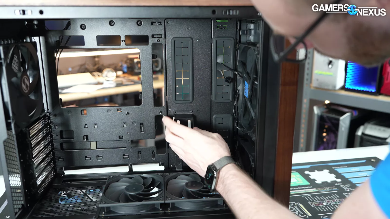 Four of the five case fans are mounted tool-lessly, and the front fans in particular can be rearranged into "CPU Mode" or "GPU Mode" with plastic spacers in between.