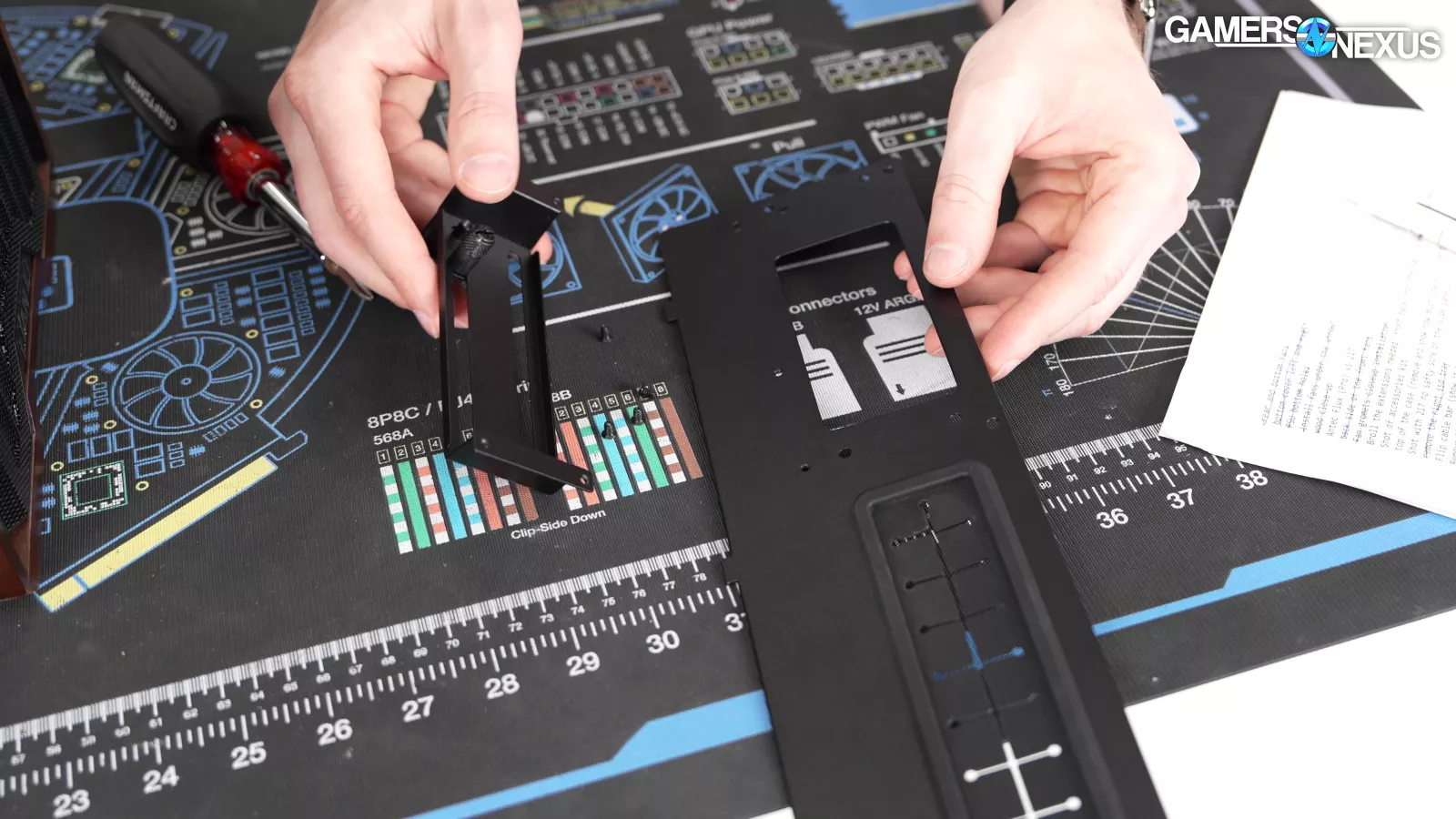 Making a vertical mount that's compatible with shroud-mounted fans is tricky, and Lian Li accomplished it with an elaborate collection of hardware: a tiny shroud extension at the front so the fans can be shifted forwards, another slightly larger extension at the back to mount a standoff to, then the standoffs. With all that in the accessory kit, it’s not usable for a vertical GPU without a riser cable, which they don’t include, but it’d also heavily impact the price.