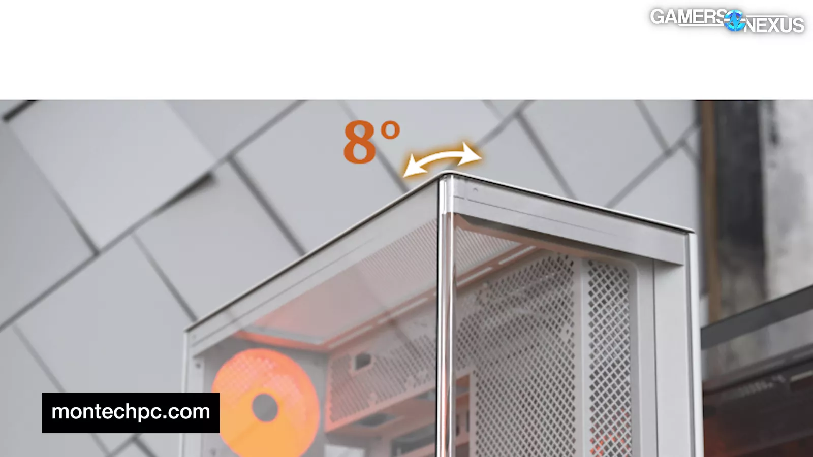 The HS02 has what Montech calls "an 8° Curved Glass front pane." It’s not 8 degrees -- it’s 90, so maybe they meant the radius of the bend was 8mm.