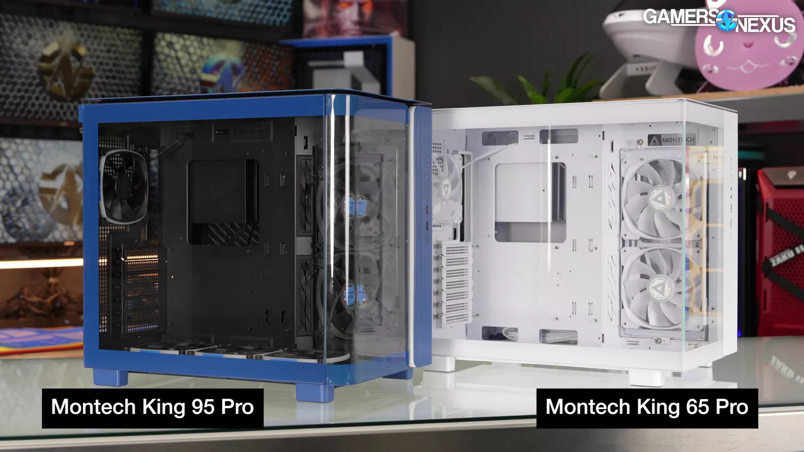 Currently, the King 95 Pro is $140 to $150, including its 6x ARGB fans. The non-Pro variant is the same case, but drops to 0 included fans and is currently around $110. At $100, the King 65 Pro swaps some panels but adds 3 fans back.