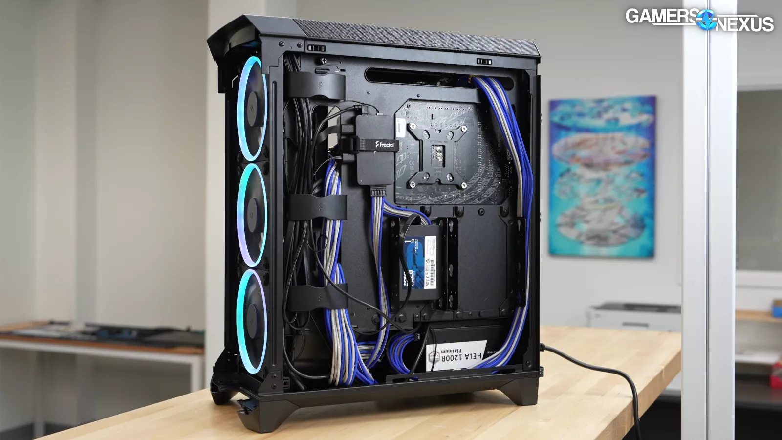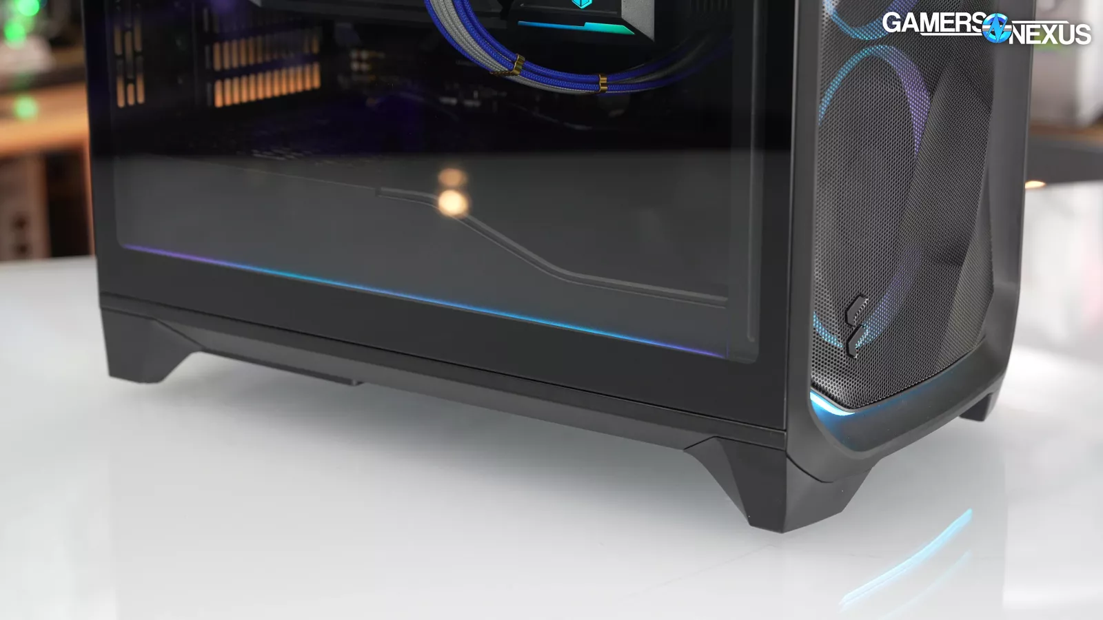 Fractal's software has a selection of prefab lighting patterns to show off the gen 2 lighting, but the default Northern Lights pattern may be our favorite. The indirect lighting around the edges of the front panel and across the PSU shroud are mostly striking in a dark room. It's unfortunate that such a big part of the case's appeal is limited to the $220 version.