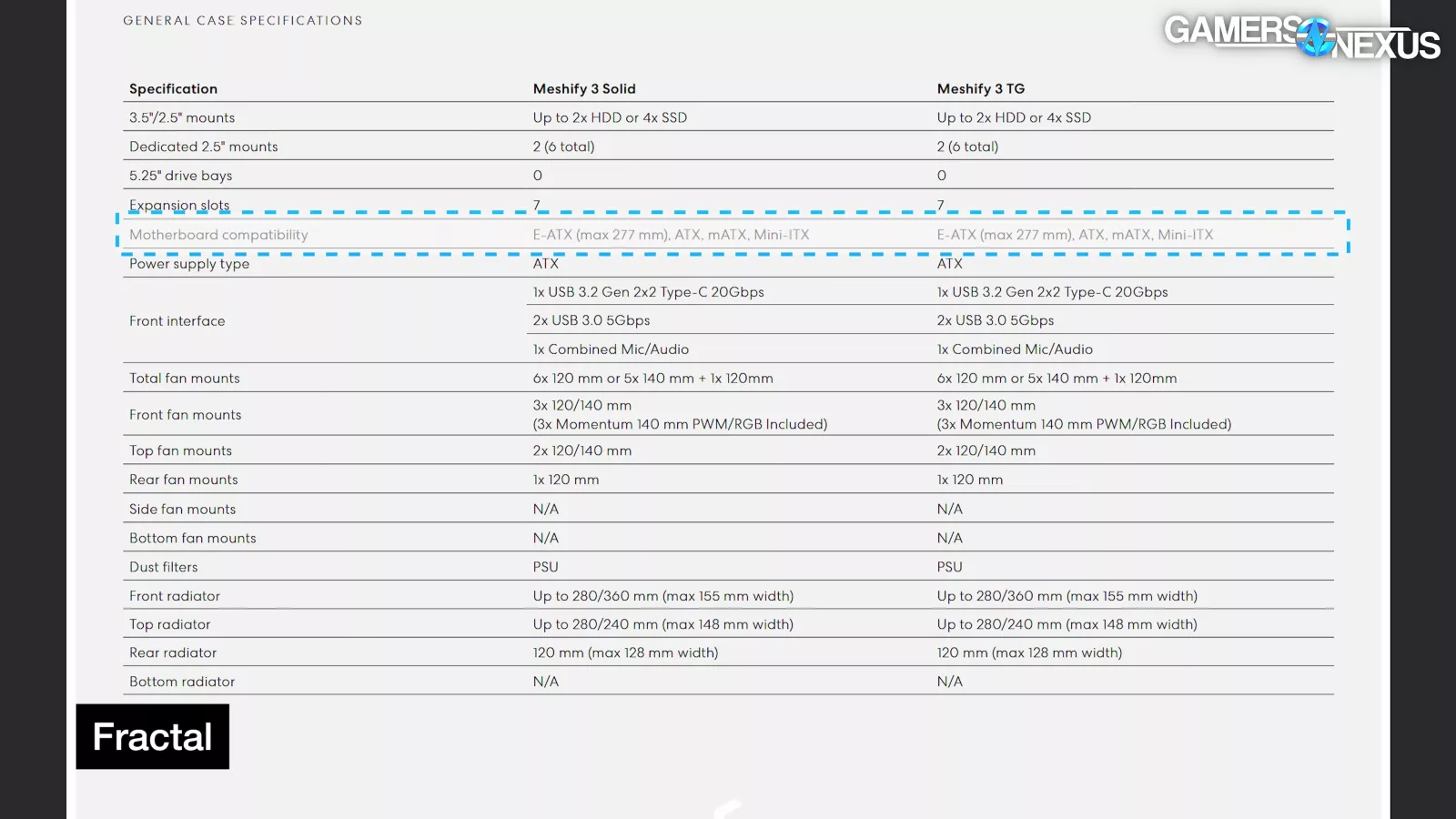 | Motherboard compatibility | E-ATX (max 277 mm), ATX, mATX, Mini-ITX |