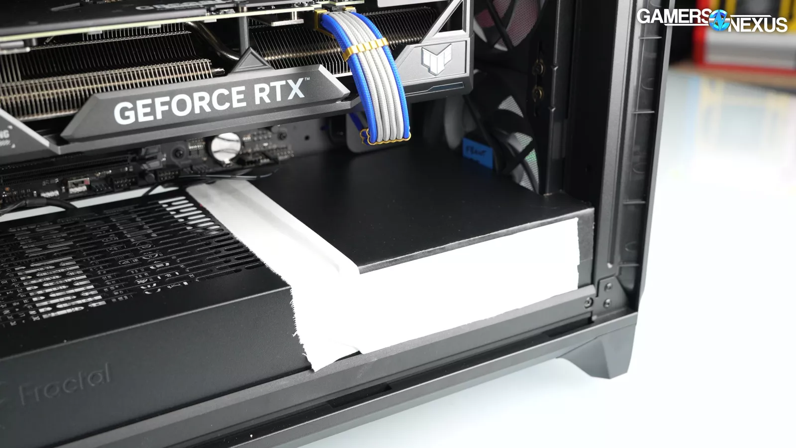 Multiple reviewers, including us, noticed that these PCIe slots were too tight for GPUs to slot properly, an issue we had recorded in our notes for the review and were about to film when Fractal sent an email that it was halting the launch. Fractal manually reworked this, meaning someone went through all the cases and shaved them down.