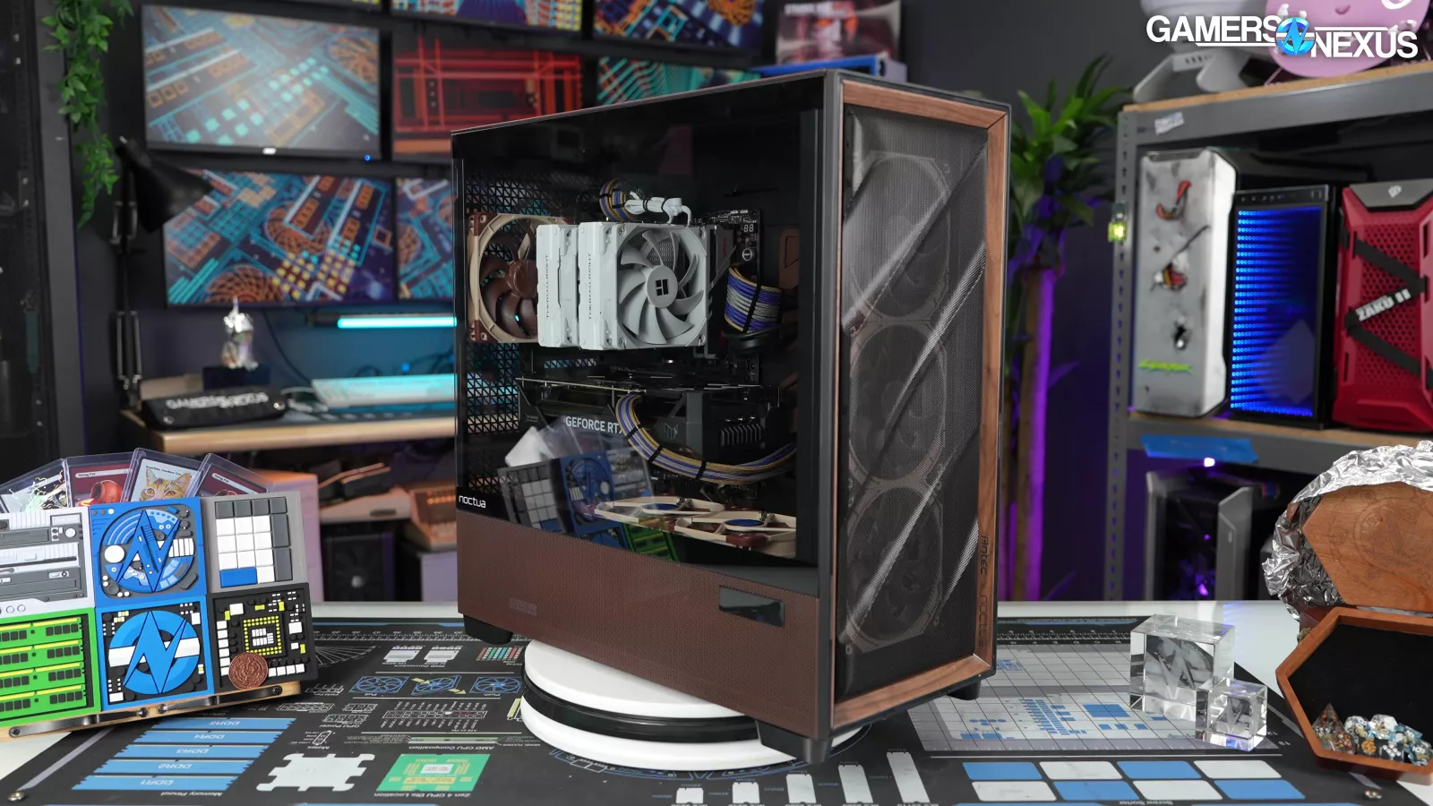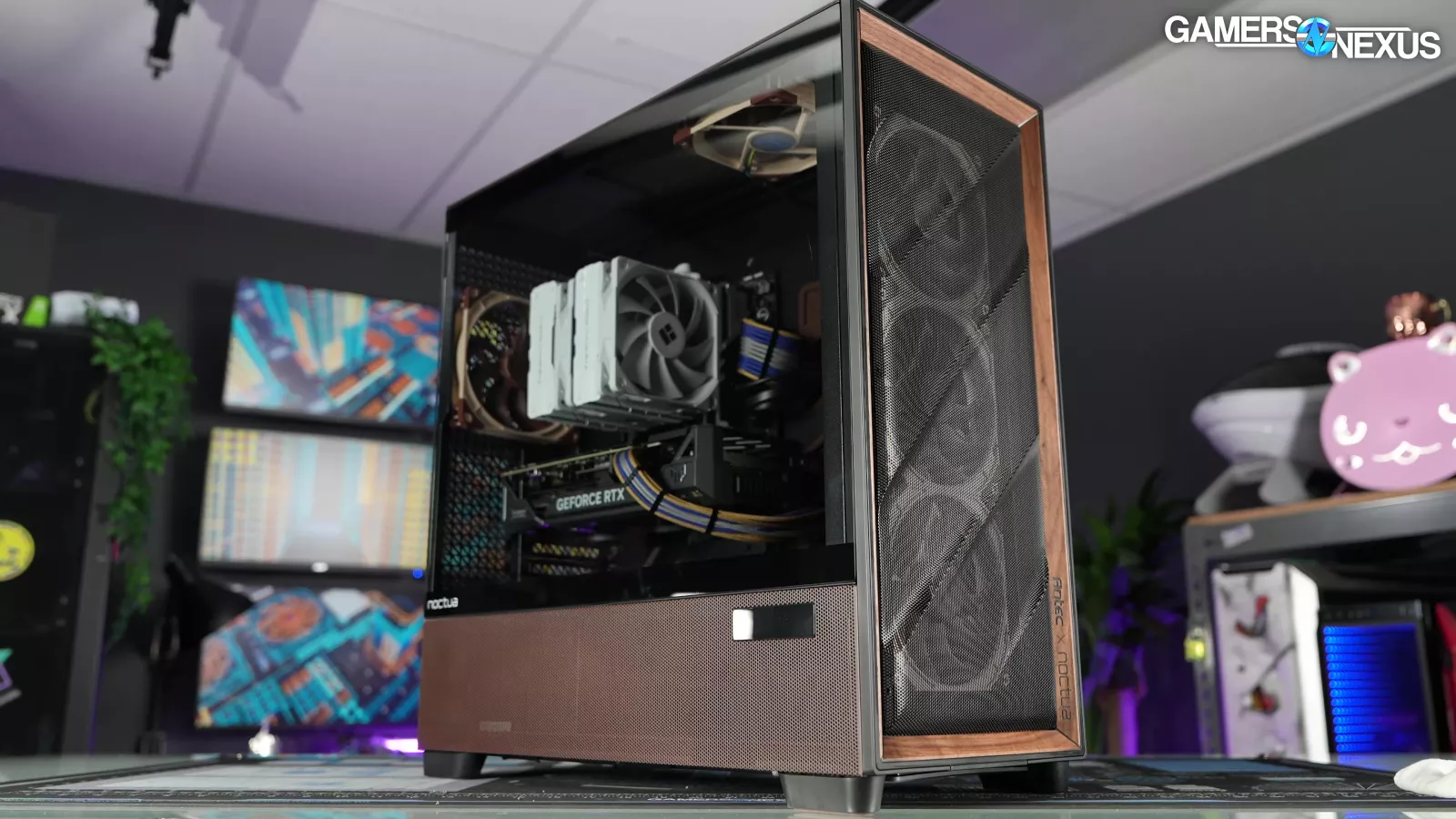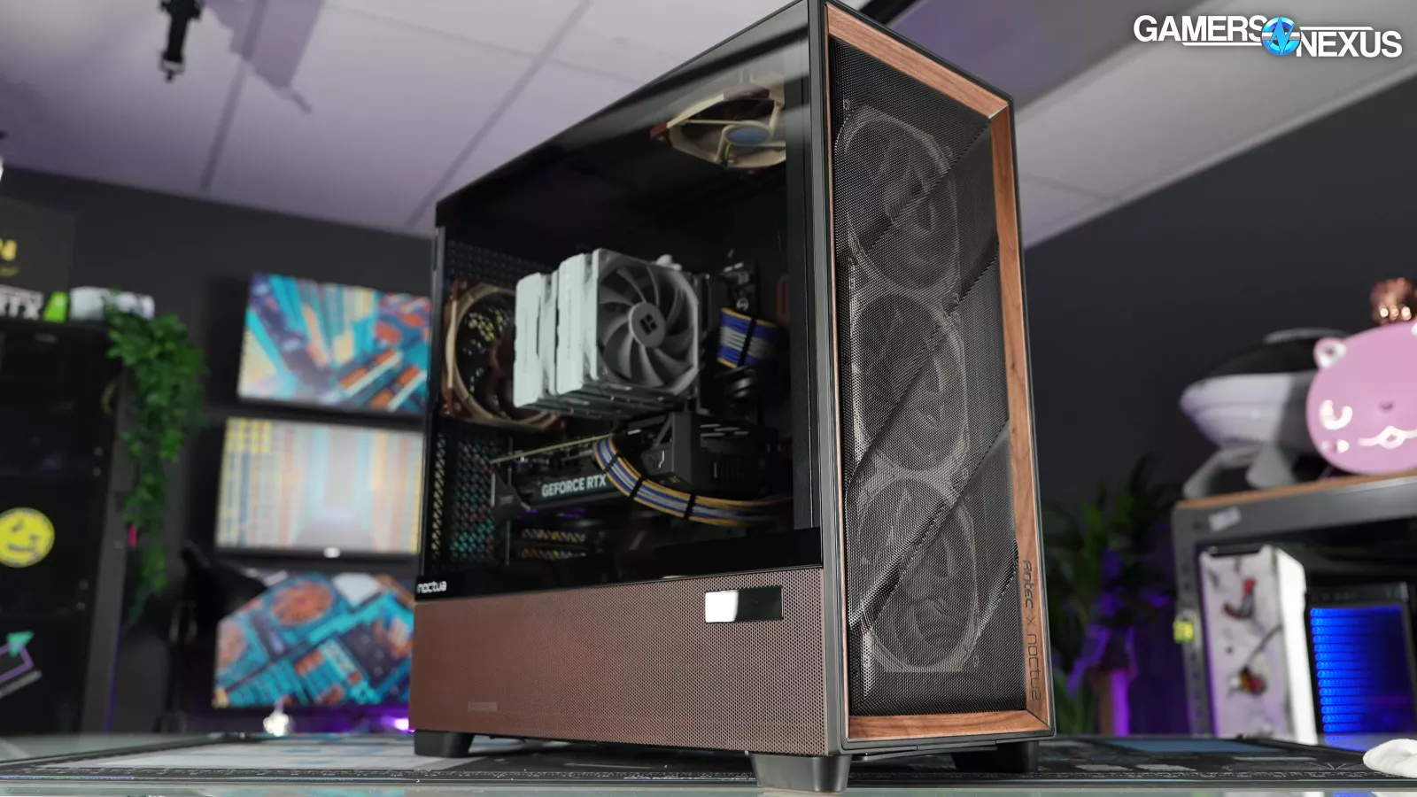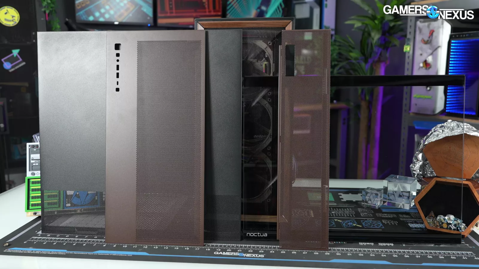 Removing price from the equation, the Noctua Edition of the Flux Pro remains at or near the top of the charts, just like the original. Most of the other heavy hitters should be familiar from previous GN award roundups: the Lian Li Lancool 207, 216, and newer 217 are strong all-around performers, with the 207 on the smaller and cheaper end, and the 217 occupying the same niche as the original Flux Pro (wood trim and all). In our review of the HAVN BF 360 Flow, we noted that its performance was strong but it was more expensive than the Lian Li cases, which is the same thing we're saying about the Noctua Edition now, so it's another valid competitor. The most obvious comparison is still to Fractal's North (watch our review) and North XL (read our review), which were at the forefront of the trend towards wood trim.