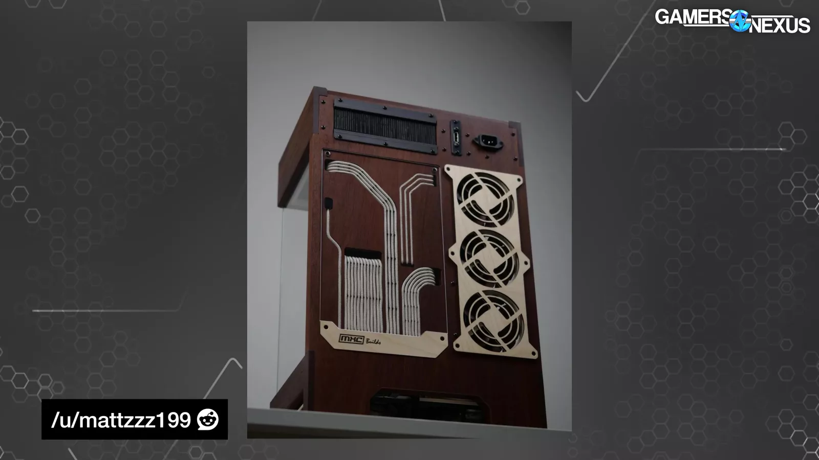 The darker brown, mahogany-style colored elements include the top of the PSU shroud and associated covers, the side of the PSU shroud, and the rubber grommets and feet, as well as the standard Flux Pro walnut trim around the front panel. Other small elements include the rubber grommets, which get recognition for attention to detail.