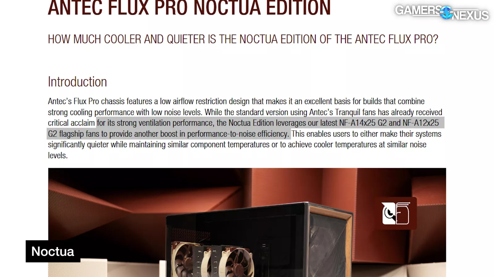 Antec and Noctua today are releasing their collaboration on the Flux Pro (read our review), now outfitted with 6 Noctua fans, a fan hub, and some brown paint.