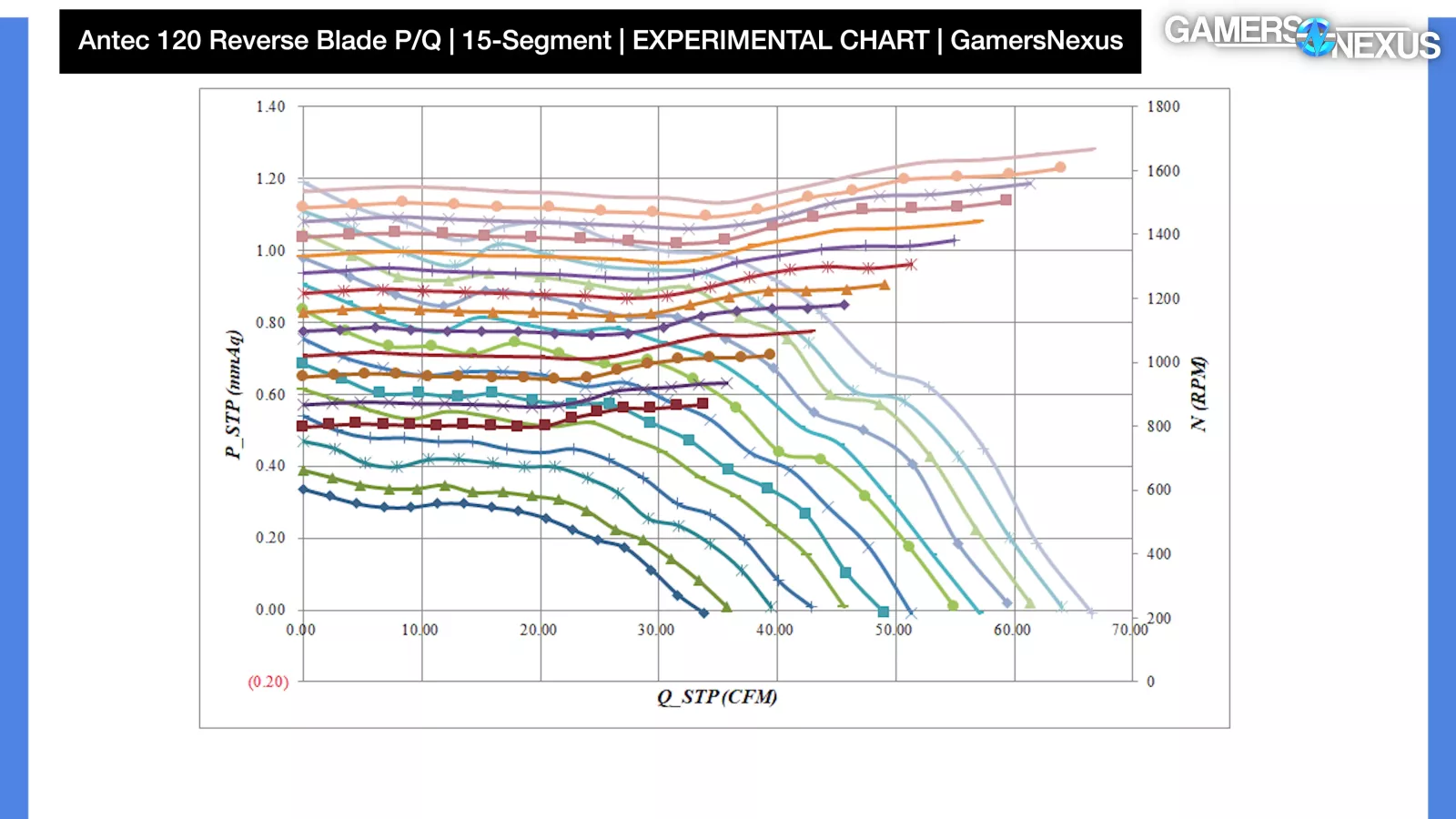 For the last one, we’ll include some experimental charts from the fan testing machine. As with our HAVN BF 360 Flow review, we want to underscore that we do not yet possess the same level of experience with these charts or testing as our thermal benchmarks, and so our confidence in the data is lower and the data has a higher risk of having errors.