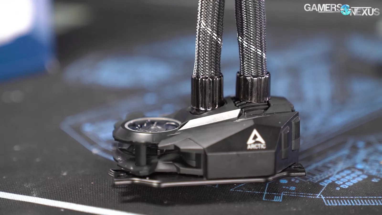 Today’s review has been the most-requested review from our commenters for about 6 months now, and it’s not even a piece of silicon. The Arctic Liquid Freezer II series has gotten heavy community interest because of high reported performance in the enthusiast forum user base. We wanted to look at it with our new testing methodology that we started developing in the last half of 2019 (when the Liquid Freezer came out) to see how the Liquid Freezer performs against incumbents, including the NZXT Kraken X62 (similar to the X63 we reviewed), the Noctua NH-D15, and a growing list of others. The Liquid Freezer’s biggest marketing point, currently wedged in between being a gimmick and a useful feature, is its included VRM fan on the coldplate housing. Our review includes benchmarks of VRM thermal performance with and without this fan, tested in A/B fashion, and also tests surface levelness, CPU core thermals on the 3950X and 3800X at 200W and 123W, noise tests, and time-to-max temperature.