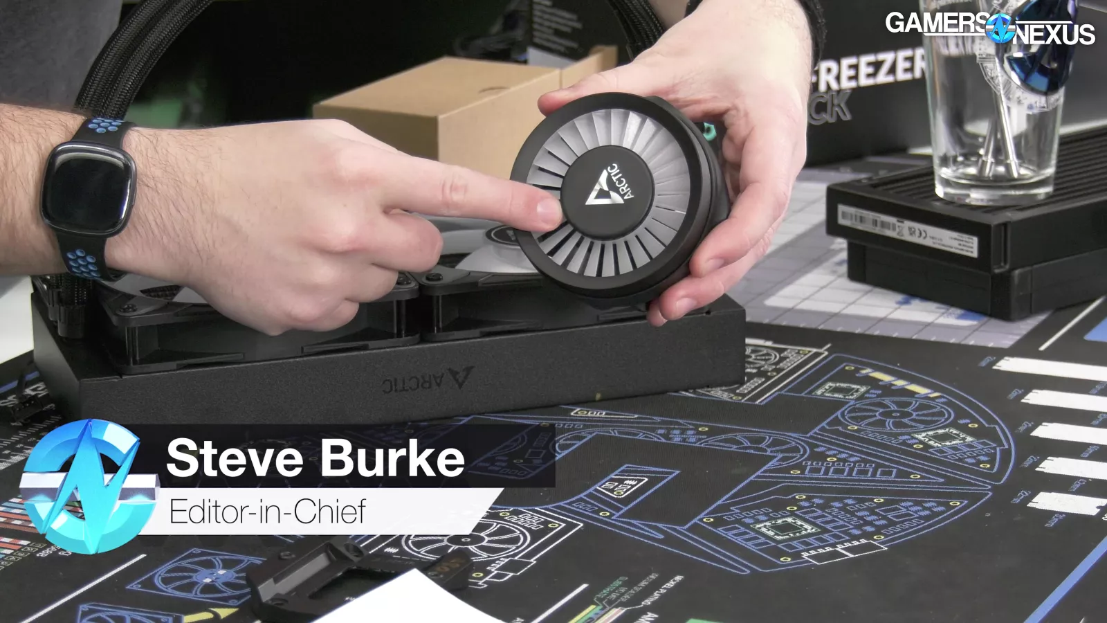 Today we’re reviewing the brand new Arctic Liquid Freezer III. What makes it interesting is that you can pull off its pump cap, which has the VRM fan inside it. It also forces a contact frame for Intel CPUs. This new cooler follows-up the best liquid cooler we’ve tested in the last 4 years -- the Liquid Freezer -- II. It’s... it’s sequential.