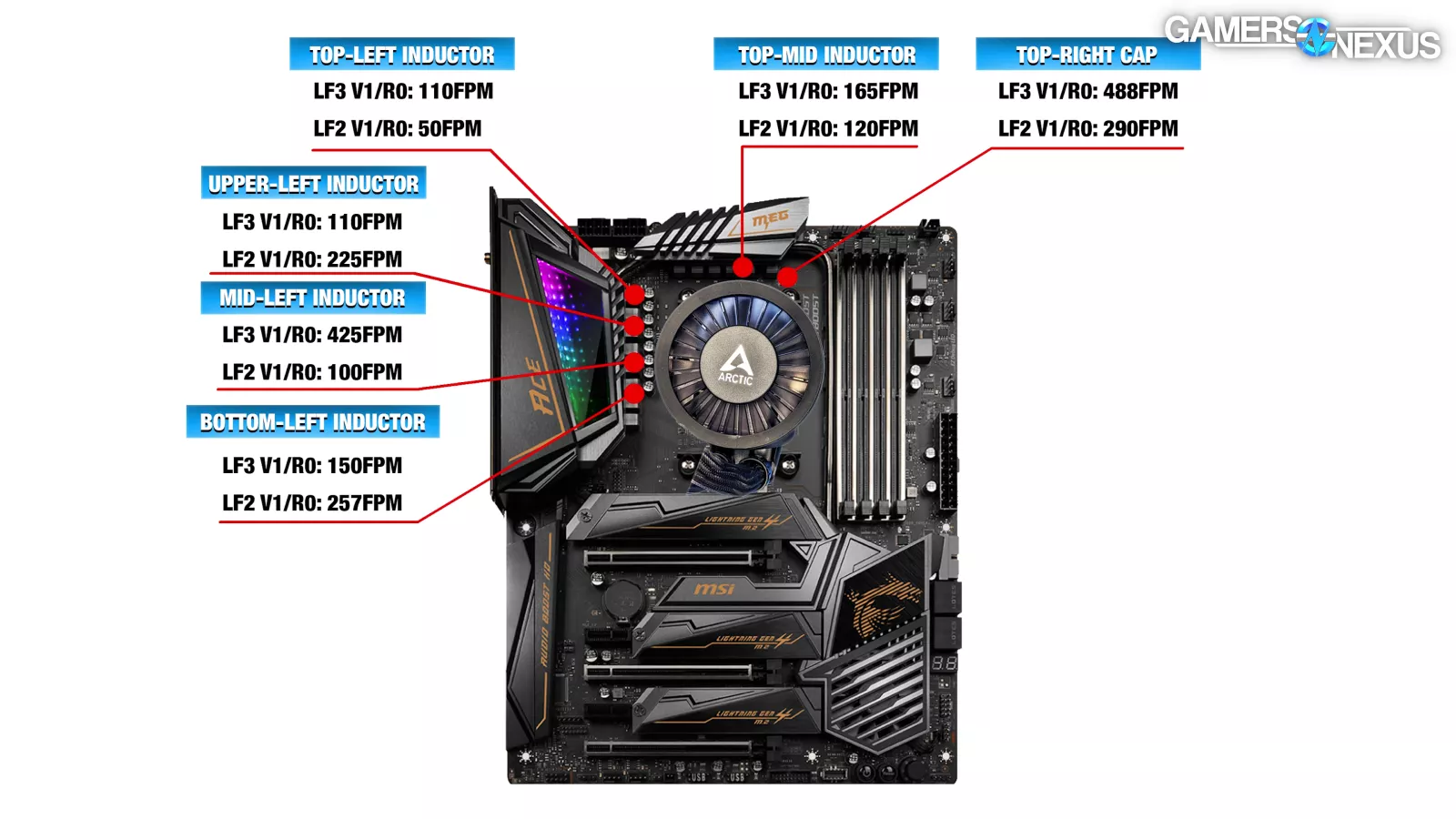 The next testing is to determine the VRM fan’s performance versus the prior model. We previously verified that the old VRM fan design wasn’t a gimmick and actually did work, so we need to do the same with this one. That involves both thermal and airflow testing, and we’ll start with airflow since it’s the most immediately demonstrative of functionality.