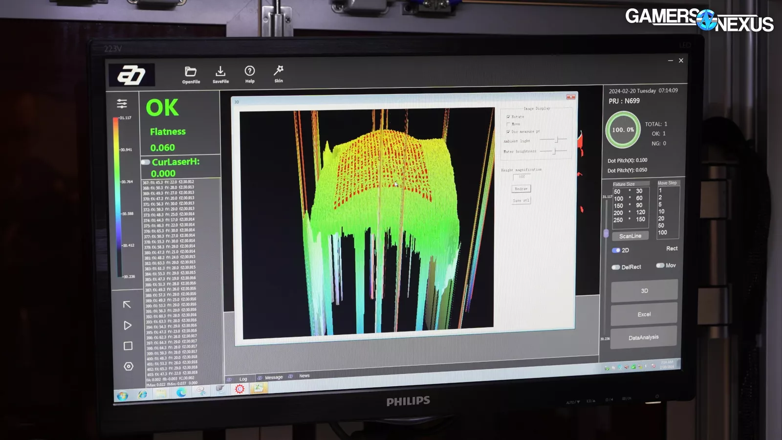 To try and understand why this pattern was emerging, we took the cold plate to our $60,000 laser scanner that we bought last year. This machine has an accuracy to about 0.05 microns and allows us to represent cold plate flatness like we never have been able to before. It’s certainly an upgrade from our manual needle probing method.