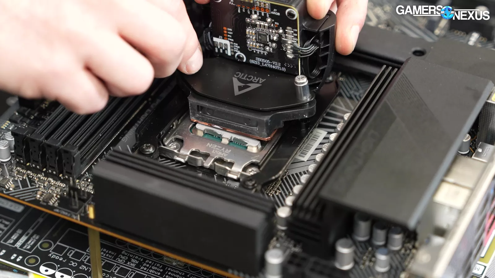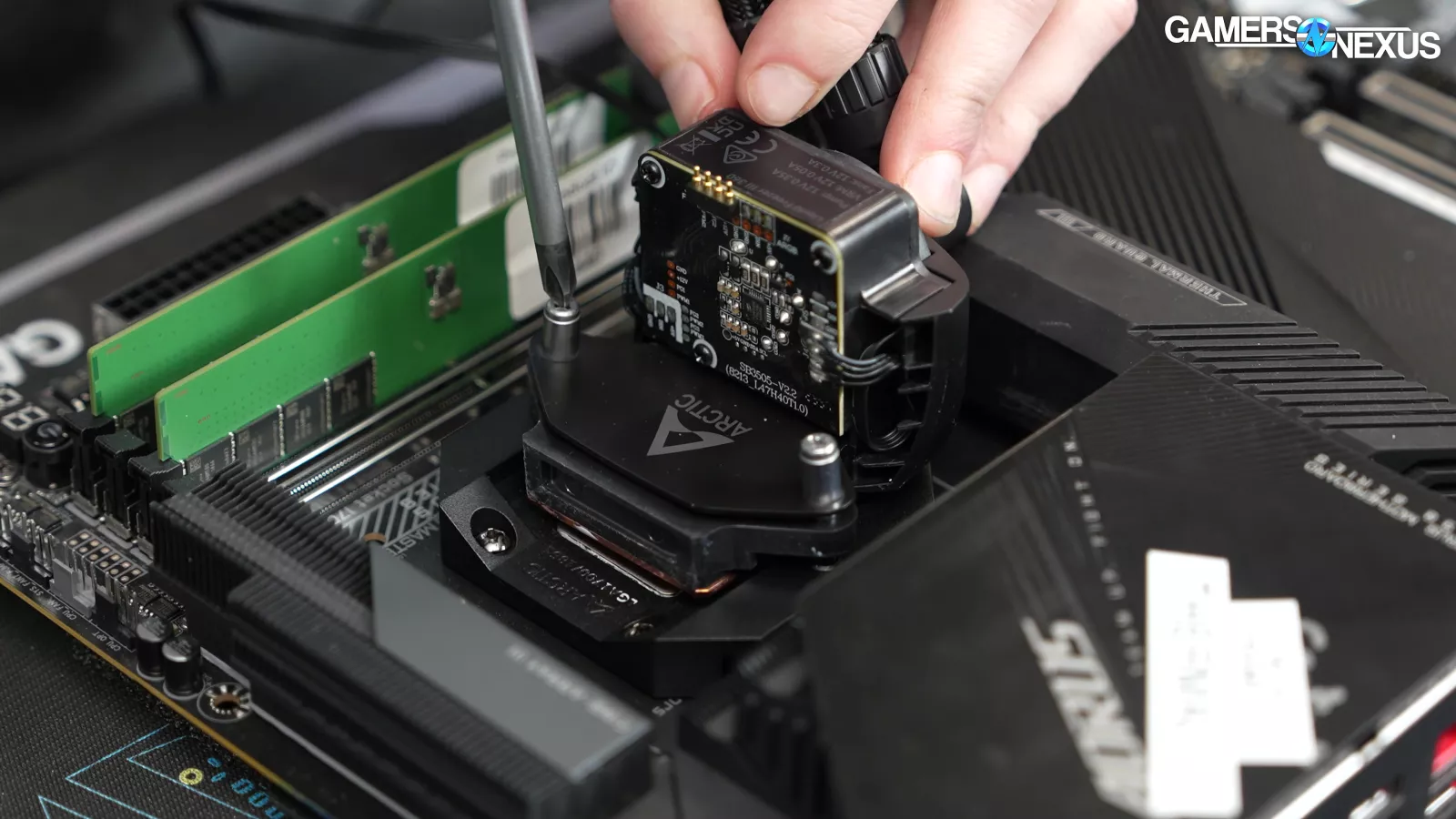 In theory, making the frame and being in control of the cold plate, which they are, should make for the best possible pressure and contact distribution across an IHS that you could get. If you buy a solution from Thermal Grizzly or Thermalright, they're just selling you the frame, so being able to mate the cold plate to a particular frame is a strength that the others don't currently have. It's something we hope that Arctic is able to leverage properly. Spoiler alert: It's not perfect.