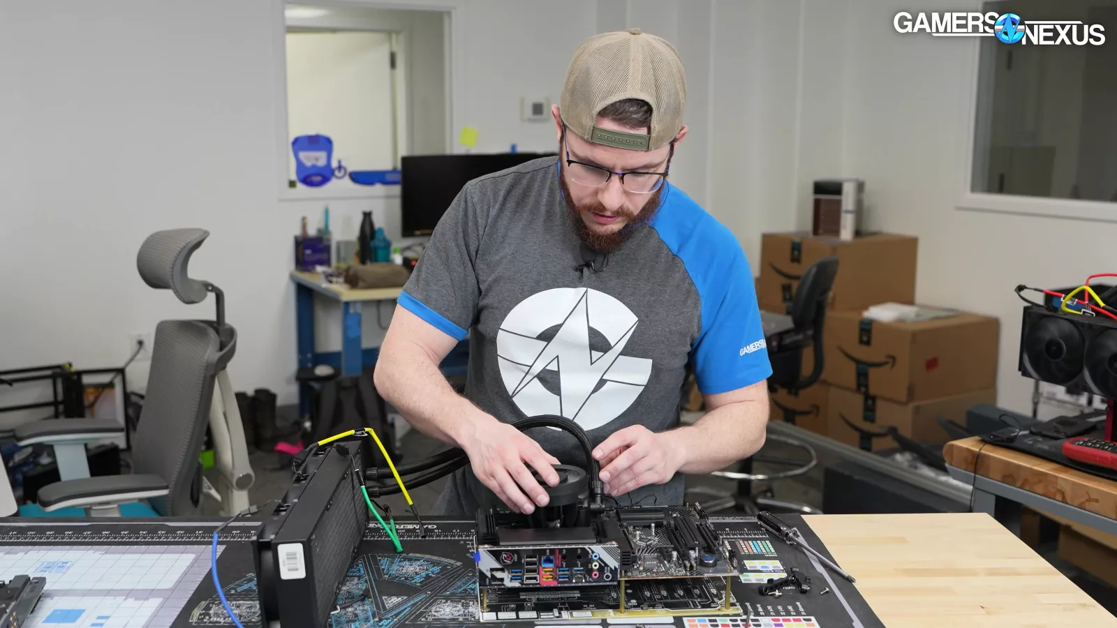 We most recently used this in our Billet Block review of the monoblock -- you can check that out for more background. This equipment allows us to not only identify a problem, but try to pinpoint the cause. To help fund our efforts and equipment purchases like this, as we’re still getting the money back on it, please go to store.gamersnexus.net and grab a GN15 metal emblem glass (featuring a high-quality badge) for our 15th anniversary, a rugged Large Modmat for your next PC build, or one of our memory explosion diagram T-shirts. Thanks for your support.