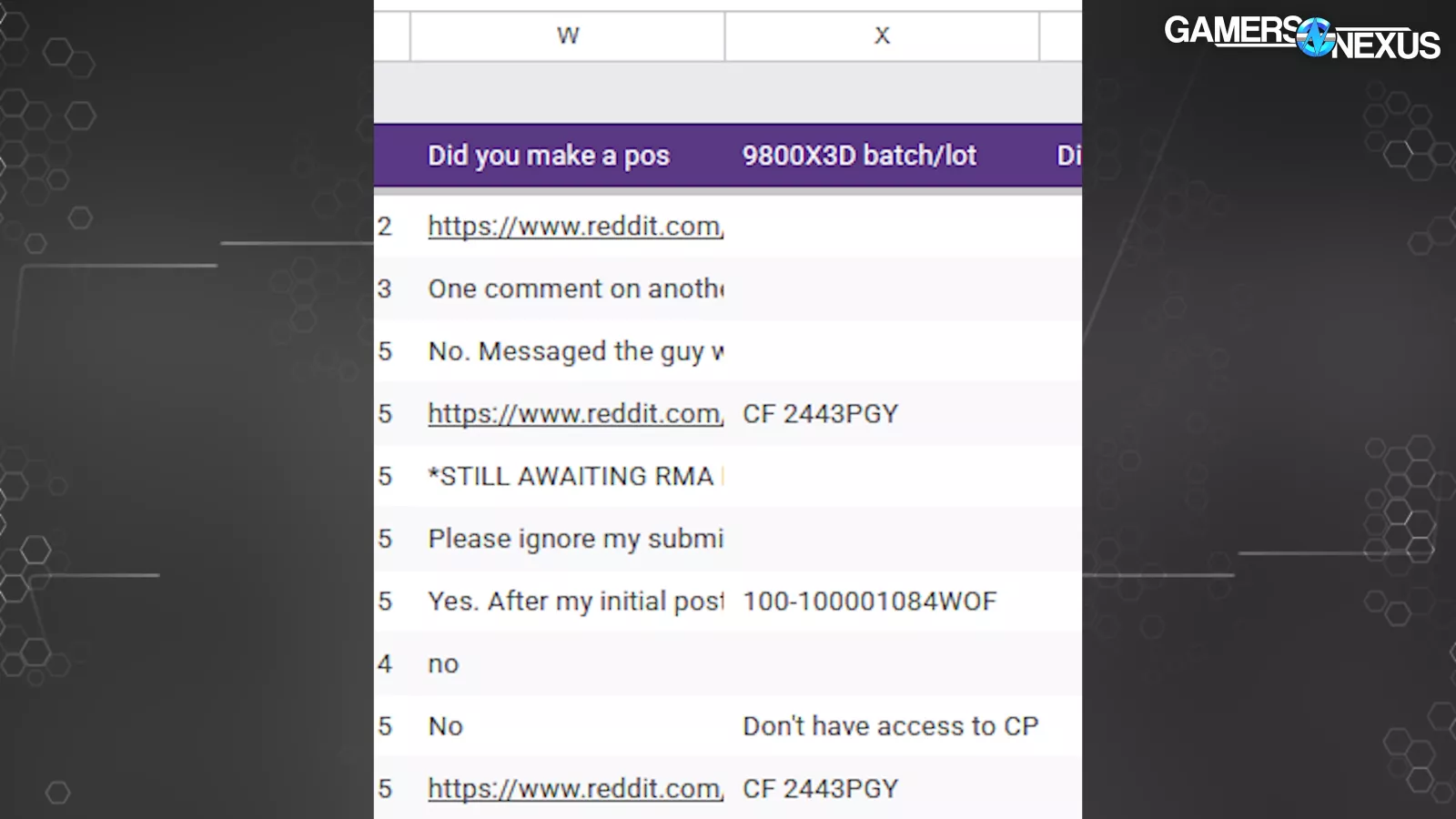 But remember that this could be completely coincidental and doesn’t necessarily guarantee bad batches. We at GN have CPUs from both of these batches and they’re fine. There is a lot of coincidence here: AMD’s 9800X3Ds have been in high demand and they haven’t been out too long yet. We don’t know how many batches there are, but we wouldn’t think it’s a crazy amount. Likewise, people experiencing any kind of failure, whether that’s caused by the board or the CPU, would be likely on a similar batch if they’re all building and buying around the same time.