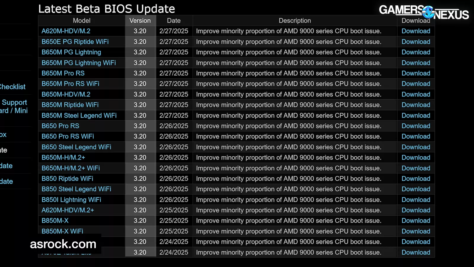 On February 24th, ASRock released a beta BIOS 3.20 with the description stating, “Improve minority proportion of AMD 9000 series CPU boot issue.” We assume this was the same BIOS previously sent out to those select users.