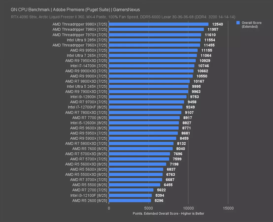 The 12600K is significantly better than the 5500X3D here, as are basically any options from the AMD 7000 series and beyond. The generational uplift was particularly large in this test.