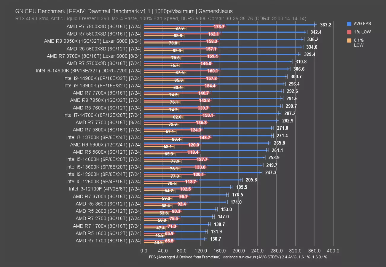 Final Fantasy is one of the ones that had more interesting behavior, especially on some of the 7000-series CPUs. That’s explained in yesterday’s video.