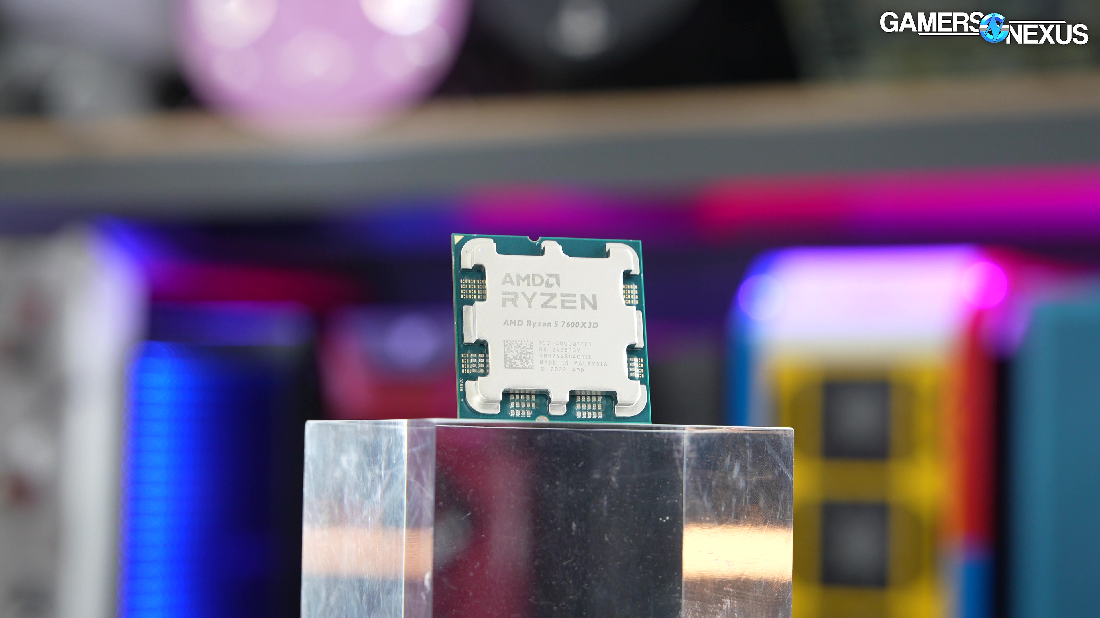AMD somewhat secretly launched its R5 7600X3D. It’s a 6-core, 12-thread X3D part that we bought for $300 from Micro Center in Charlotte. AMD didn’t email us about this CPU, didn’t do review sampling, and just sort of quietly launched it to the market through Micro Center. It’s similar to the 5600X3D launch (read our review here).