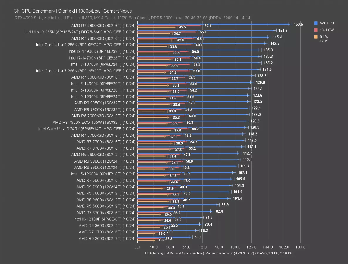 Starfield is up now. This was another strong one for the 9800X3D when we reviewed it.