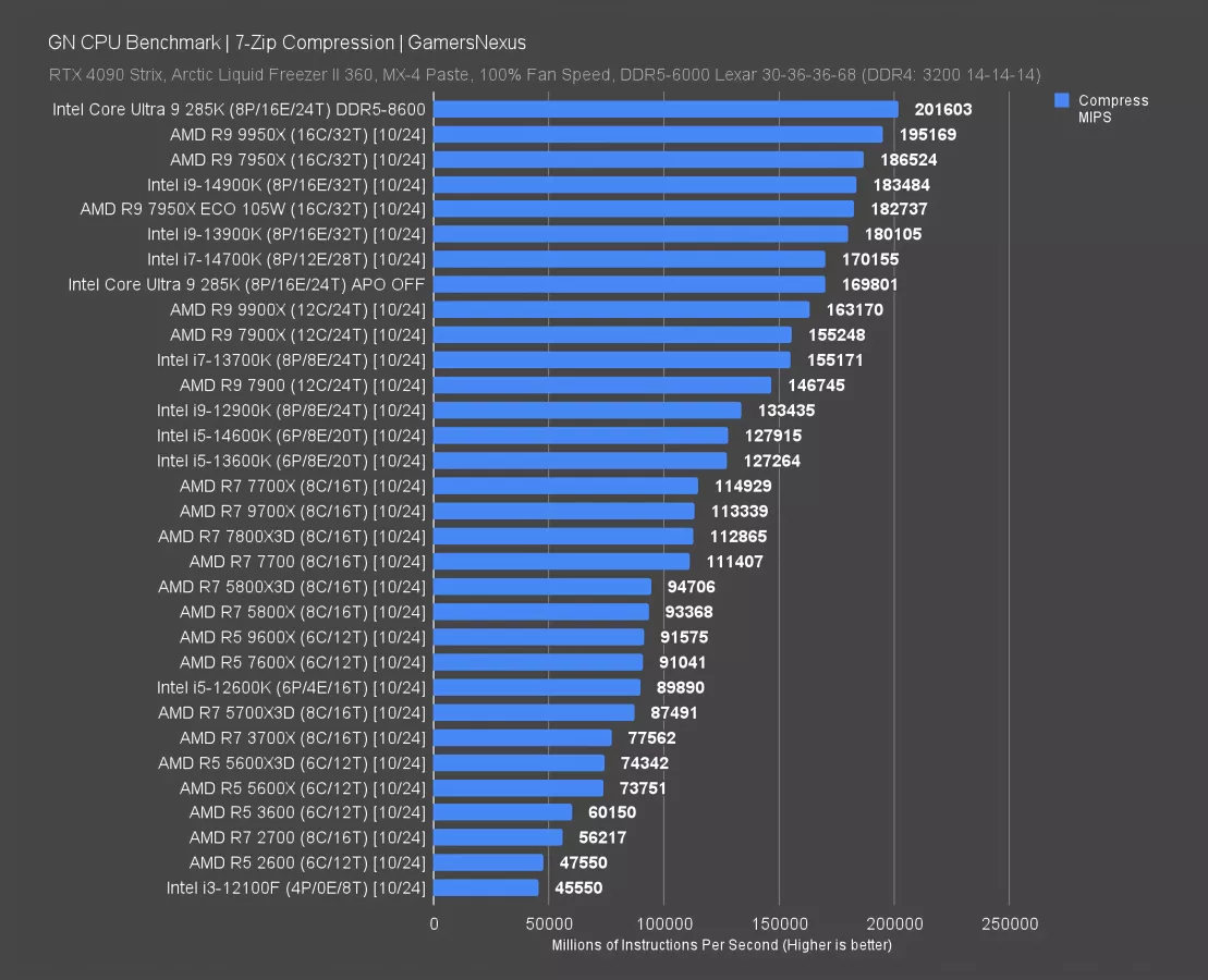 The best news out of the 285K is that it might be a fresh start for Intel and that it is genuinely a lot easier to hit higher memory clocks than before, and that benefits it in tests like our 7-Zip benchmark.