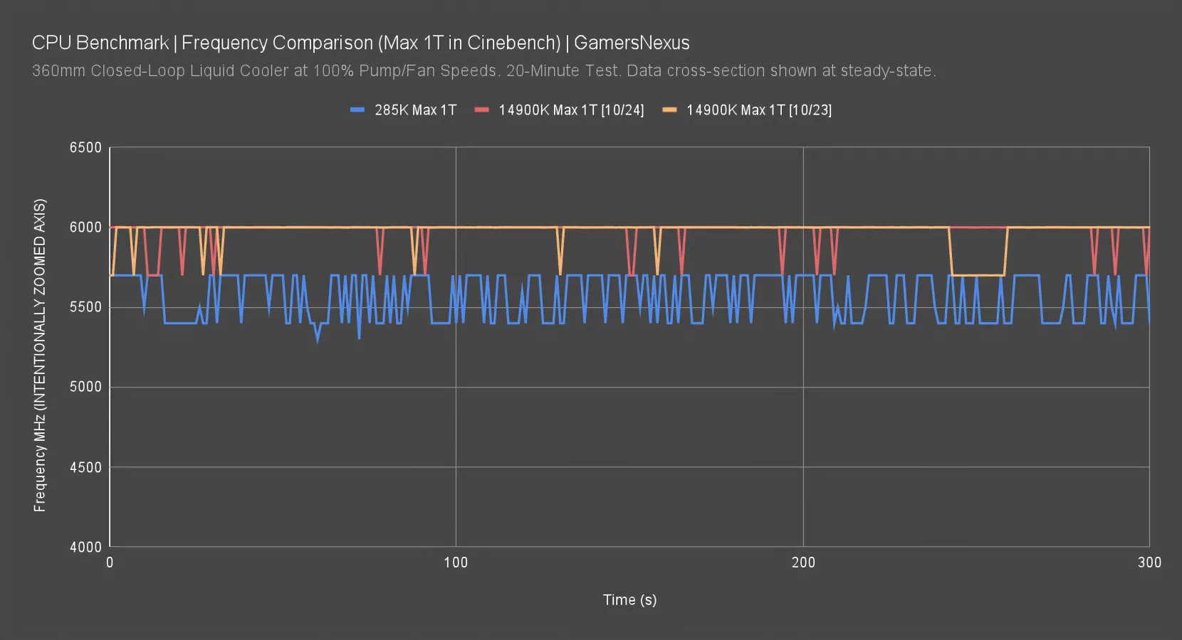 Single-Core Frequency Comparison (14900K vs. 285K)