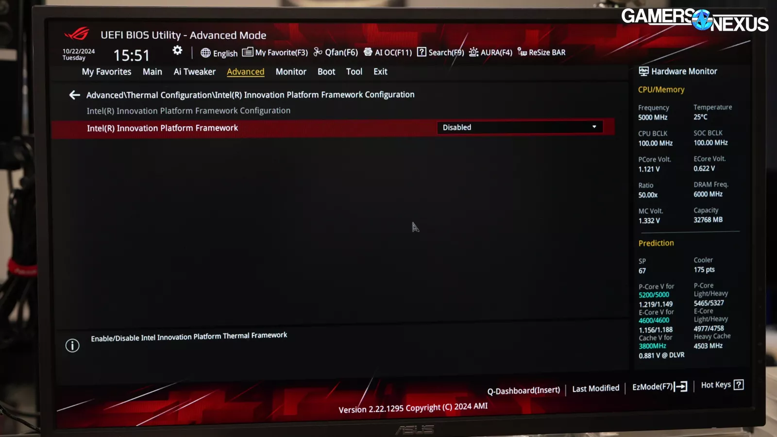 Dynamic Tuning also no longer exists on our board, despite Intel telling us that it should be present and enabled. The option has been renamed to Innovation Platform Framework and was off by default, which meant APO was off.