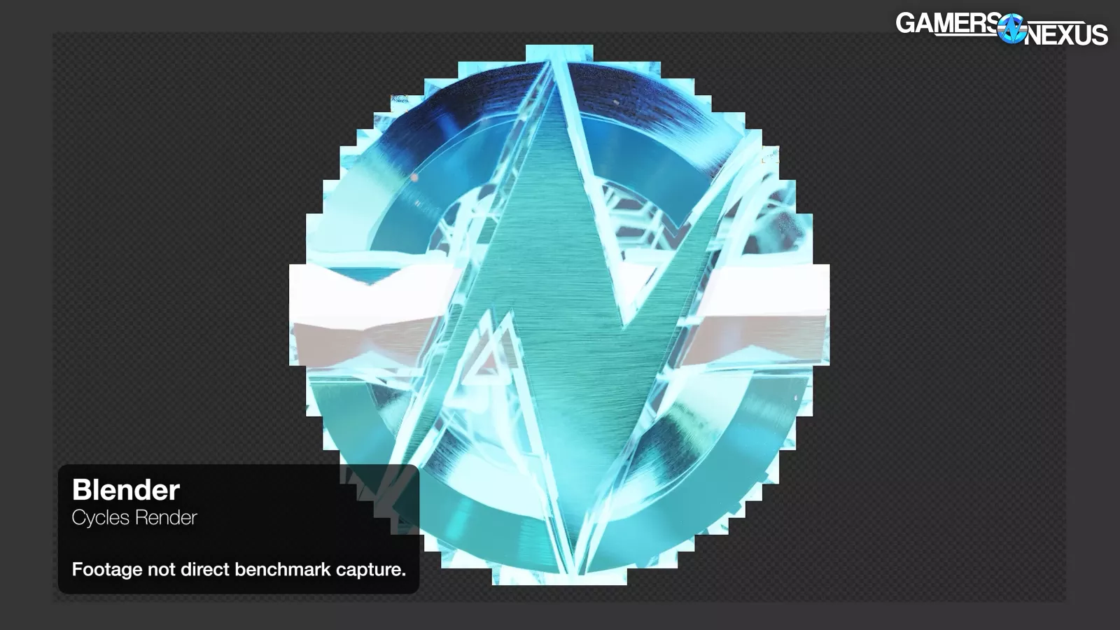 Blender is next. For this, we run a tile-based CPU render of one frame from our intro logo animation, but at a higher sample count and quality.