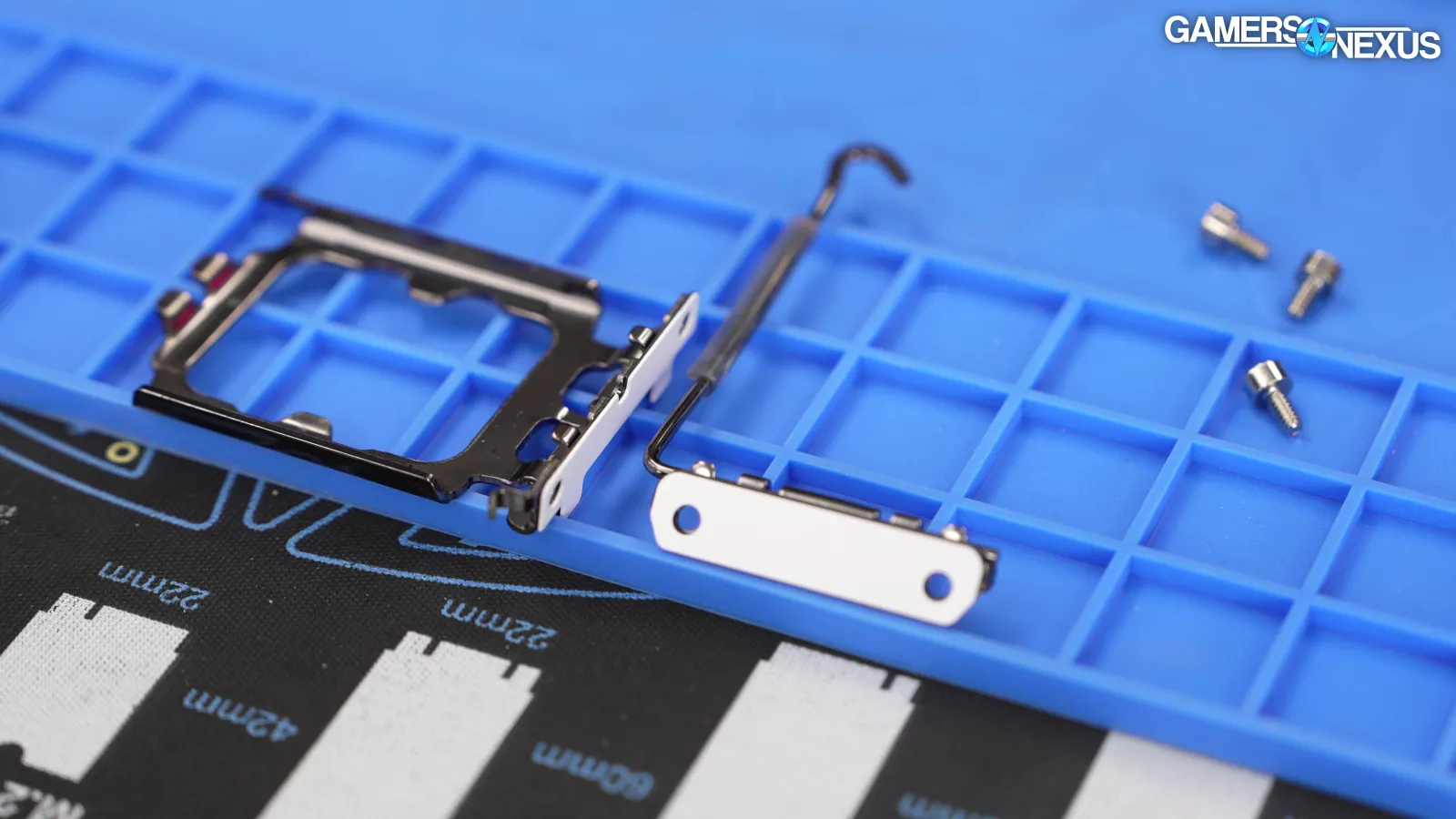 Unfortunately, Intel’s new and better ILM is optional. It didn’t force motherboard manufacturers to use it, so they can still cut corners if they want to save a few pennies. The new ILM is called the RL-ILM, or Reduced Load ILM, with the old one being referred to as the “Standard” ILM (indicating an assumption of it being the default). Our Z890 Hero ships with the RL-ILM, as do most high-end boards, so we used it as a test platform to swap to other official LGA-1851 ILMs for comparison.