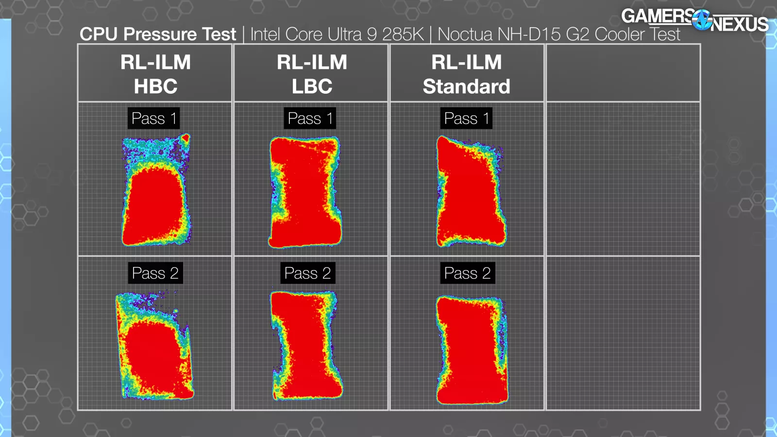 The standard ILM with HBC cooler scans reinforce this: The HBC cooler ends up with more evenly distributed pressure at the top and bottom edges of the CPU IHS.