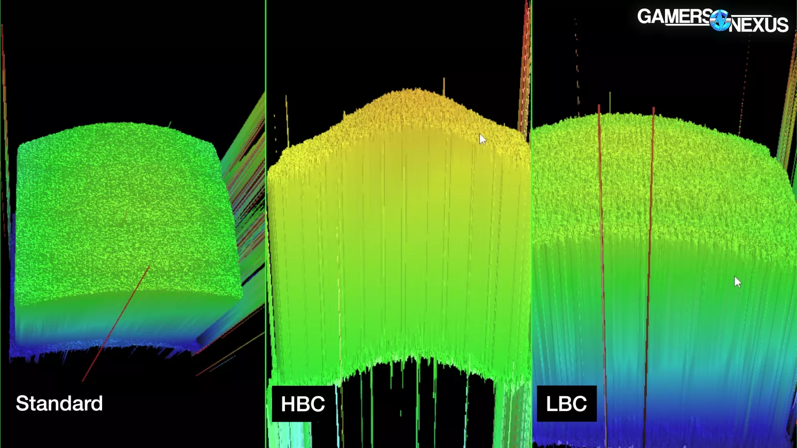 Our Noctua NH-D15 G2 review went into depth with laser scans of the cooler’s coldplates, and that hasn’t changed. We’re showing the LBC, Standard, and HBC scans again briefly here just to help recap the impact because when we’re looking at pressure and how it is affected by the ILM, the cold plate is a part of that equation.