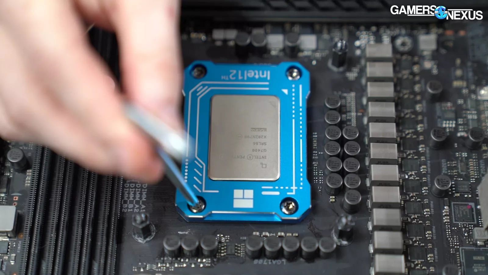 We are also not testing anything below the minimum spec Intel declares for the socket, which is a 35 lb. force from the cooler. Anything high-end that’d be paired with the current CPUs will meet or exceed this requirement anyway.