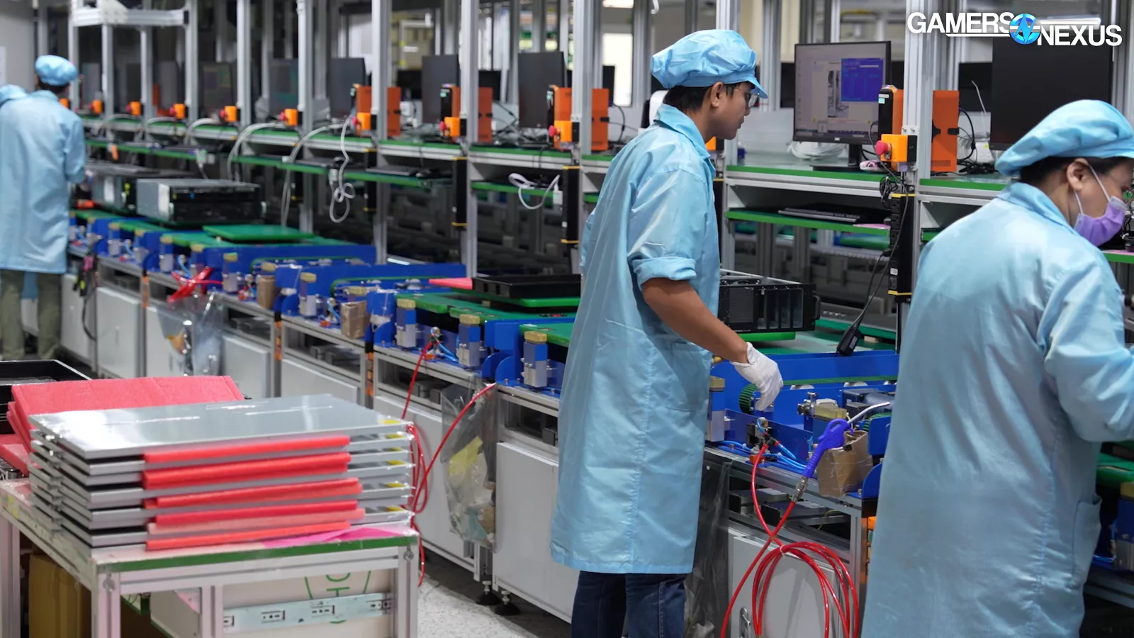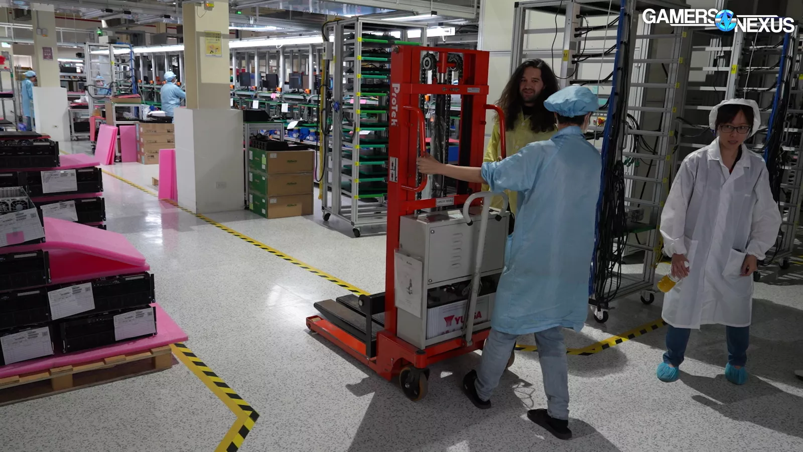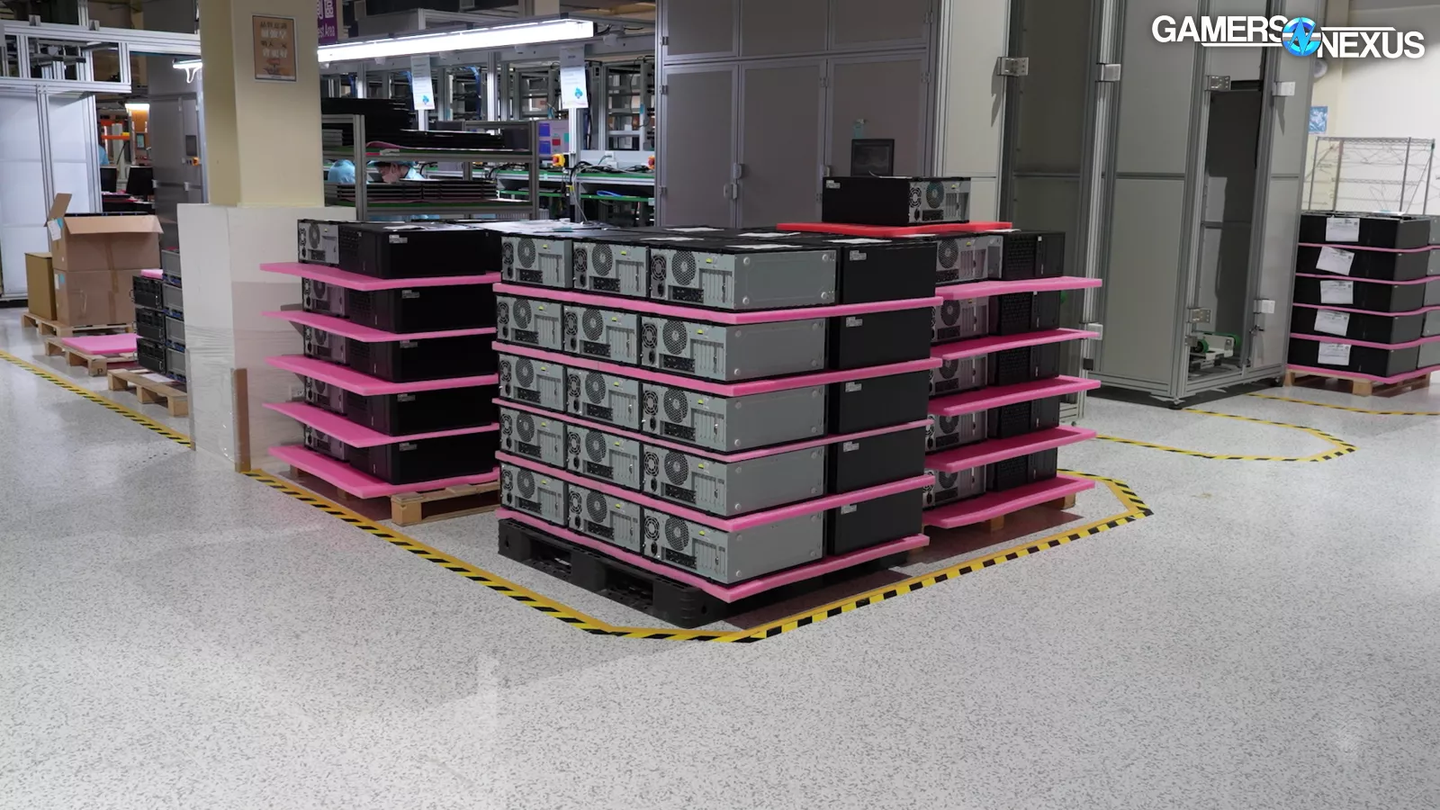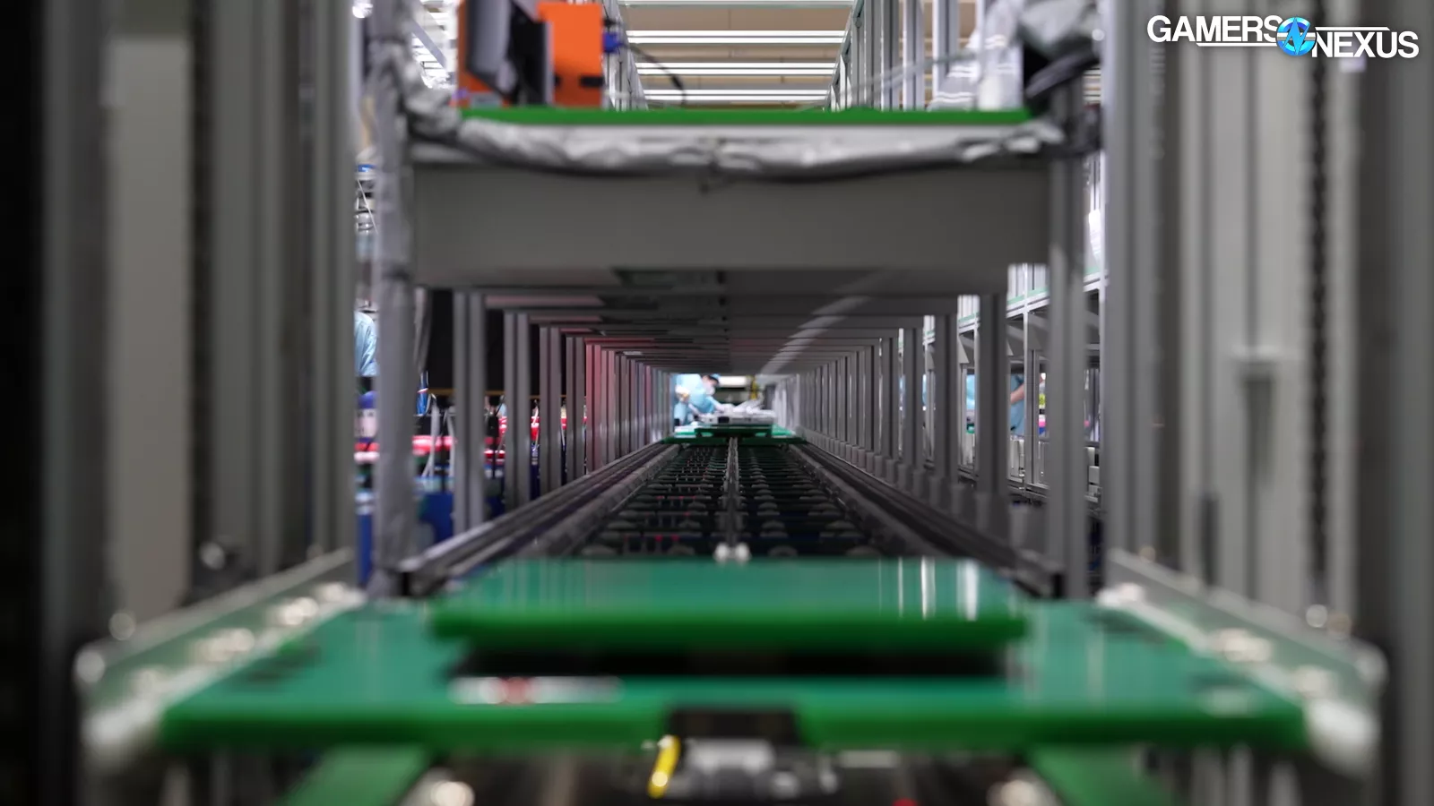 A different line is configured for 2U systems due to changes in process. For full configurations with maximized RAM, an assembly line crew might socket upwards of 1,000 sticks per day. We’re betting the job application asks how strong your thumbs are.