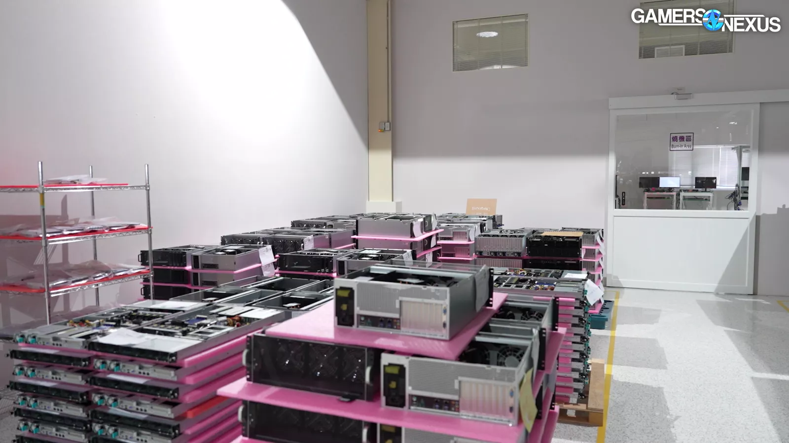 There are 6 complete lines per floor at any given time for assembly, with each featuring its own SOP for the customer orders. Per day, this factory can turn through about 80 servers per line, maxing out at about 480 servers for this floor alone.