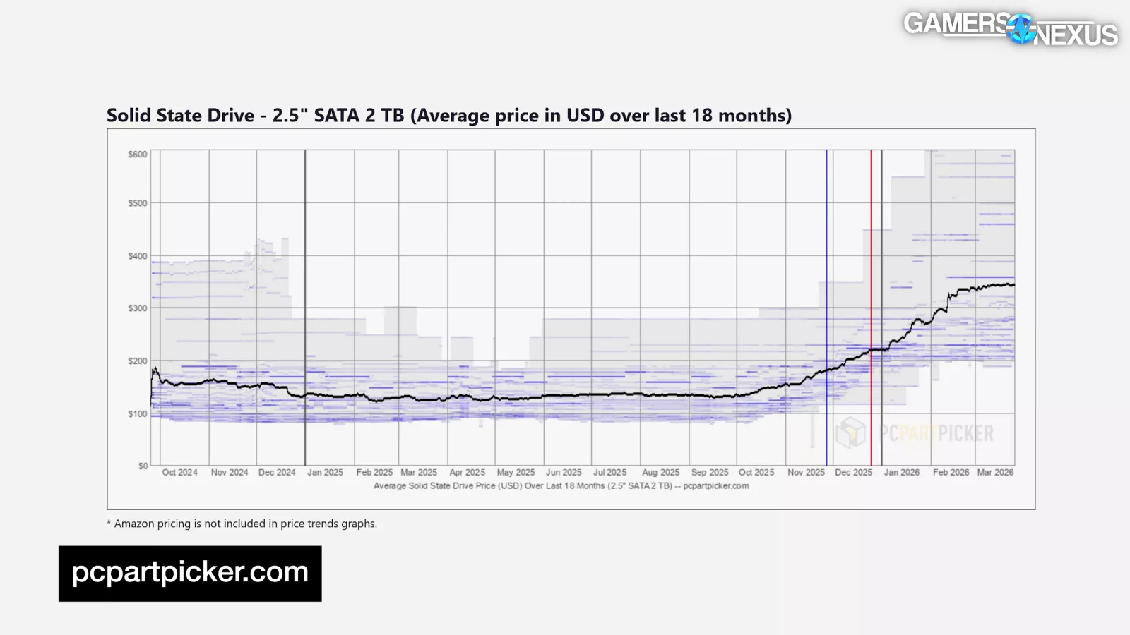 | SSD Price Trend | 2.5" SATA SSD (2 TB) | GamersNexus11/12/2025 to 03/12/2026 | |||