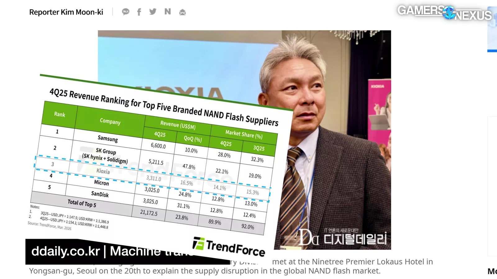 A managing director for Kioxia, the 3rd largest NAND manufacturer with over 14% market share, told Digital Daily (through machine translation): “To be honest, this year’s production is already ‘sold-out.’”