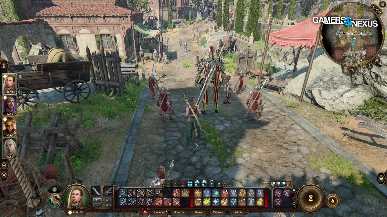 Wilderness combat had us in the 70s, also higher than Baldur’s Gate itself. Zooming-in in the wilderness dropped our framerate by over 10FPS, something we couldn’t replicate in Baldur’s Gate city. It was much more consistent there. We think this is just related to the proximity of other character models to the camera, plus the wilderness zoom had a longer sightline before occlusion might have culled assets.