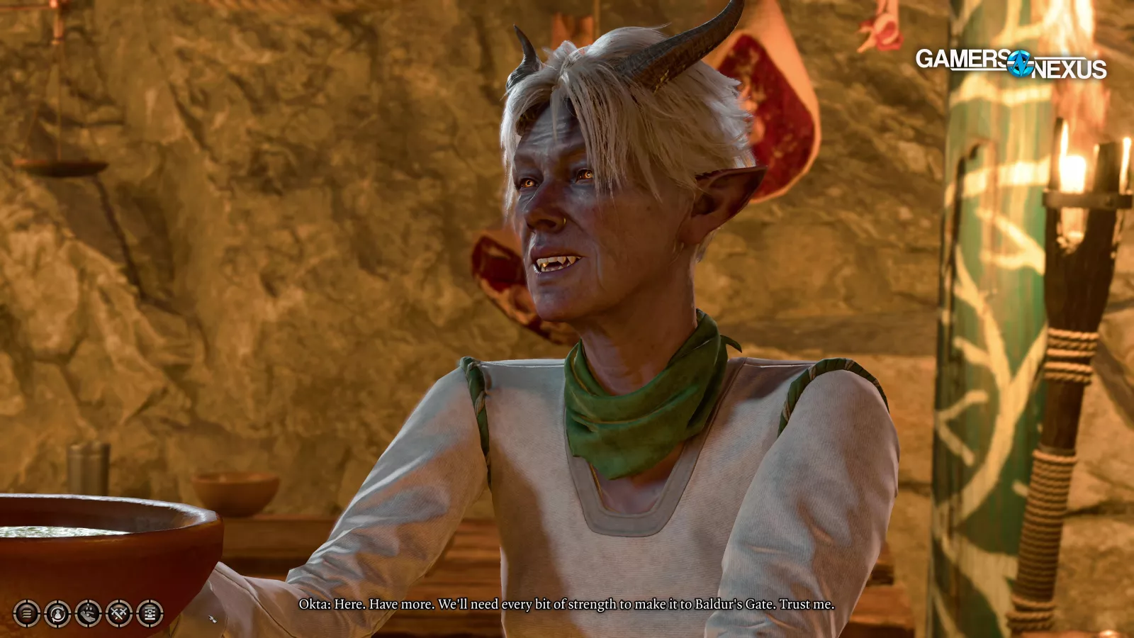 All of these various scenes all averaged together are 69.5 FPS, with lows behind but steady at 42 and 34. Baldur’s Gate city seemed to hover in the 60s, although we encountered one conversation with a troll – and not the kind we see in the comments every day – where our frame rate dropped to 56 FPS AVG. The other conversation was at about 60. These higher-quality assets that load in during conversations impact framerate. It looks nicer during those scenes, but it’s not a constant part of the game.