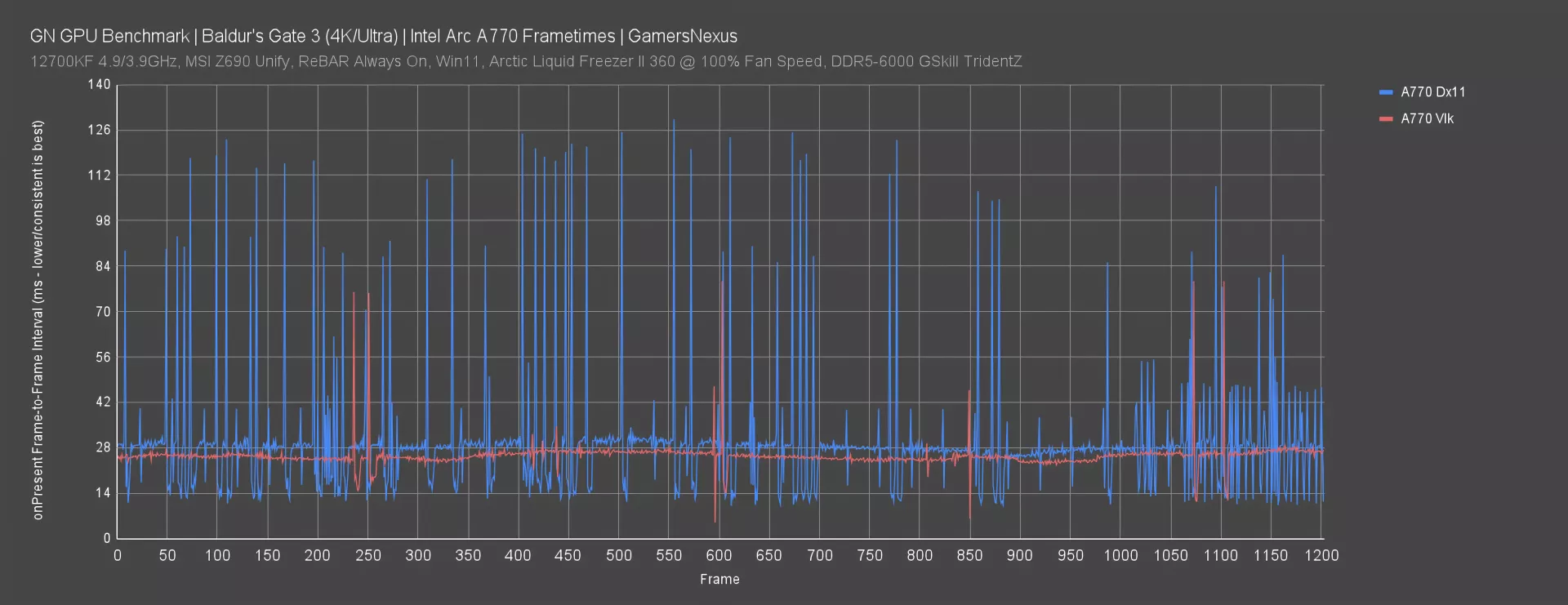 Intel Arc DX11 vs. Vulkan Frametimes