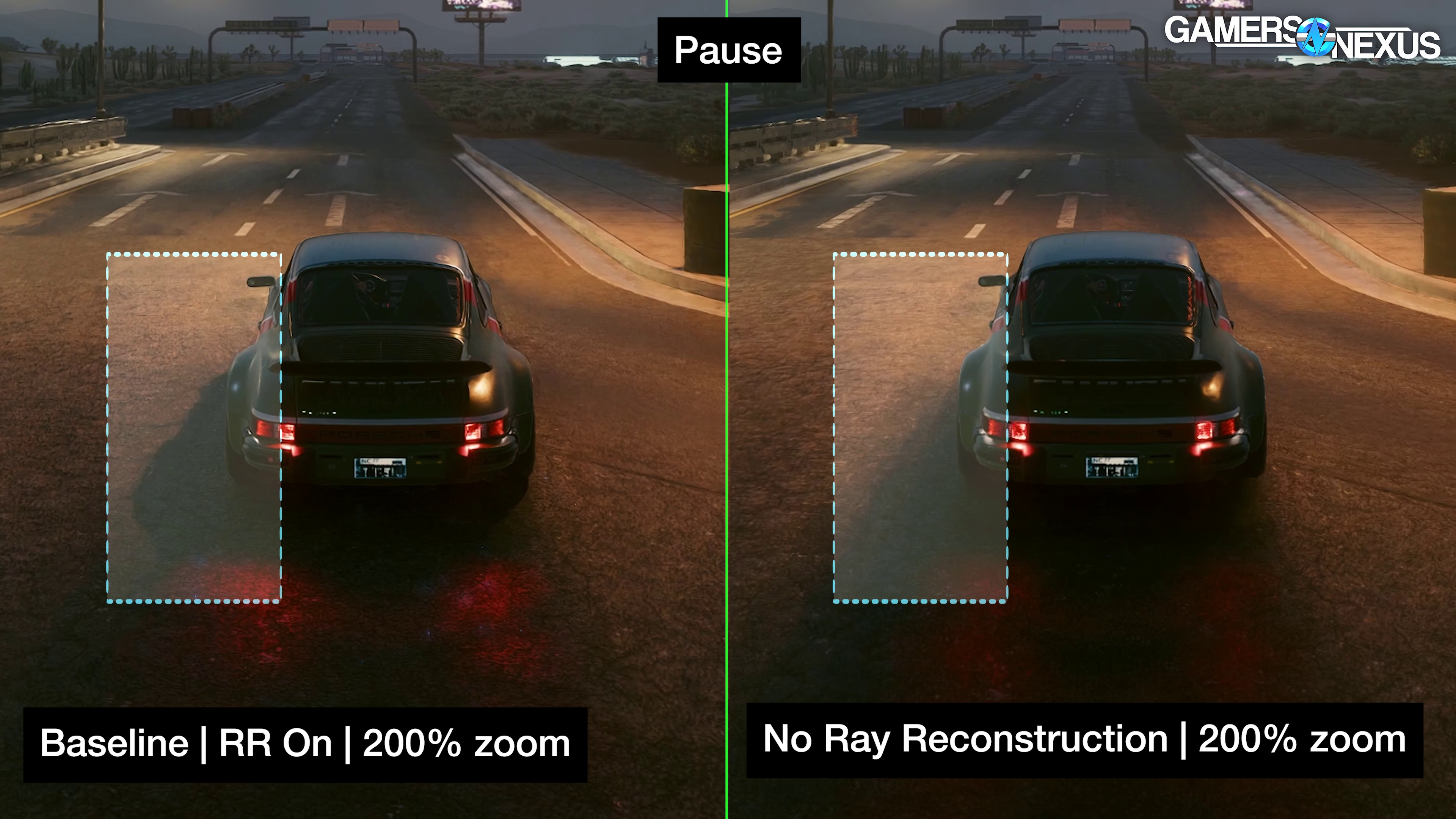 (By default: Left is the baseline with ray reconstruction on, right is the test with ray reconstruction off. Both images are cropped to avoid additional scaling.)
