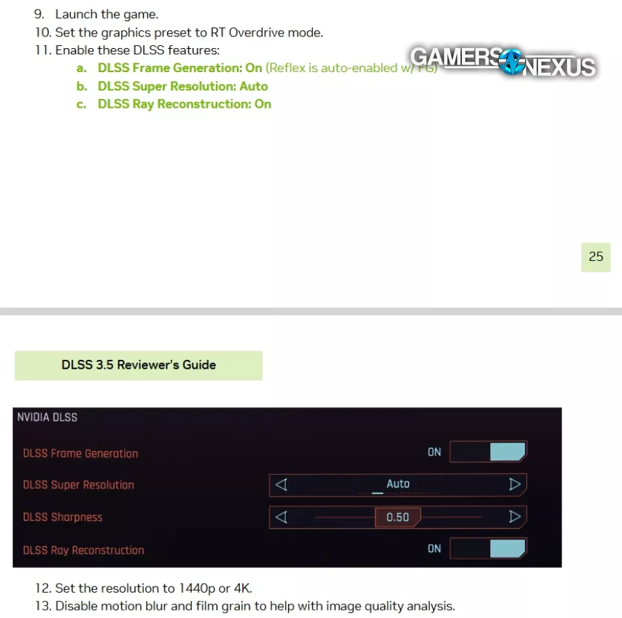 One problem: NVIDIA's review guide recommended DLSS Auto, which is completely insane, and we hope nobody took that advice. It introduces a huge variable. We did not follow this advice. It would not lead to the most useful comparisons.