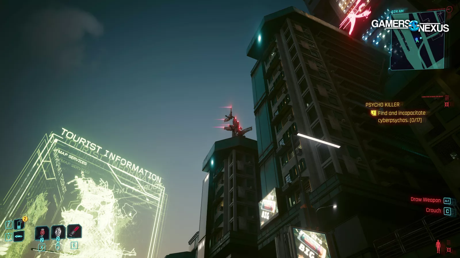 Also, if CD Projekt is reading, PLEASE fix the settings menu. Individual settings get reset constantly for inscrutable reasons. We've had situations where we applied settings, clicked "run benchmark" in the settings menu, and the settings at the end of the bench were different from the ones we'd set at the start. It's extremely difficult to have confidence that the settings are ever what they say they are.