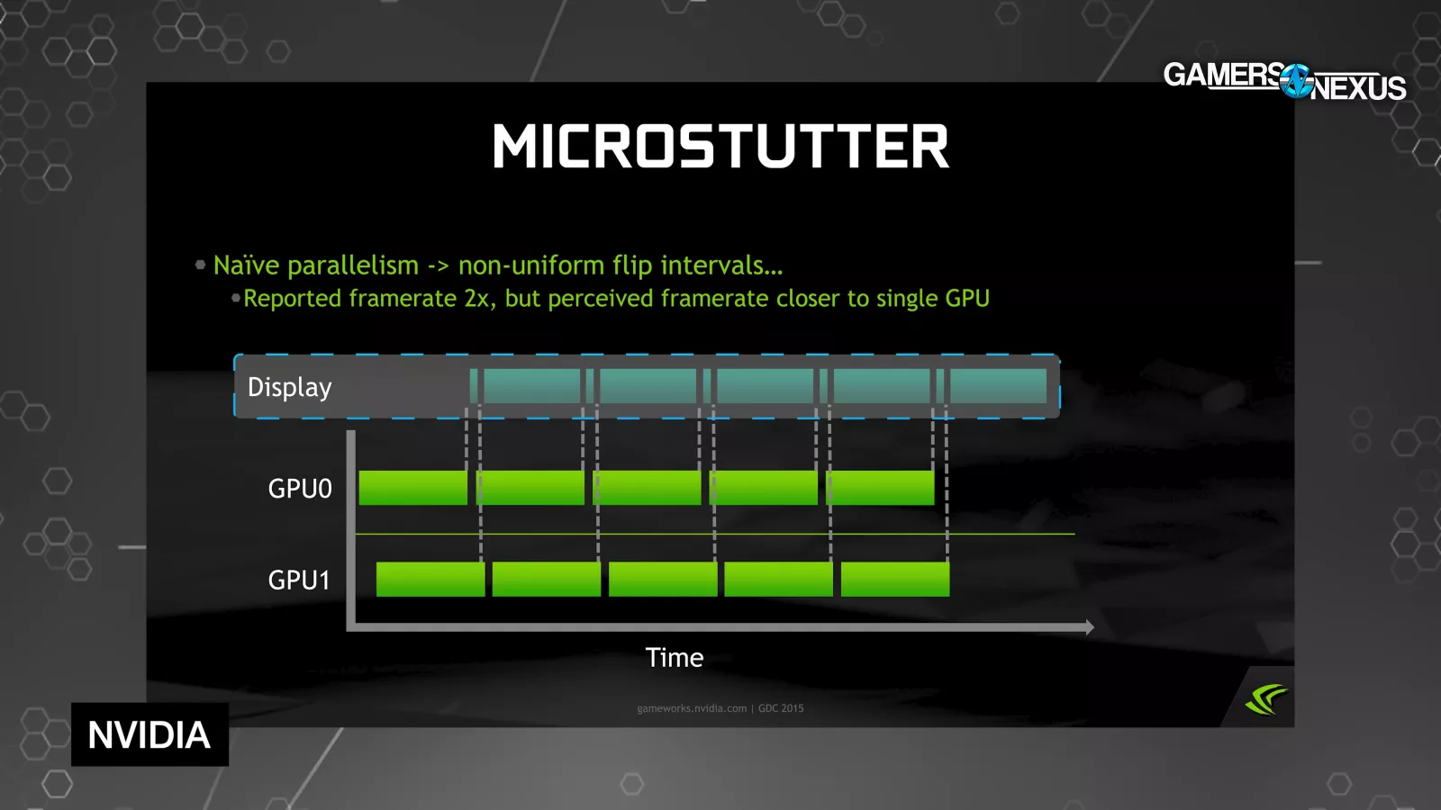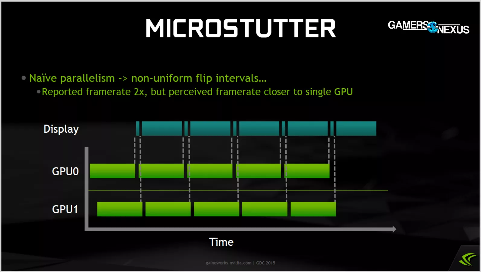 Animation error has been associated with microstutter in the past, but it's not quite the same thing. If anything, animation error is a way to measure microstutter, but not microstutter itself, depending on the definition. Microstuttering was frequently brought up in the context of multi-GPU rendering, so we'll go back in time and start there by referencing materials from GDC 2015.