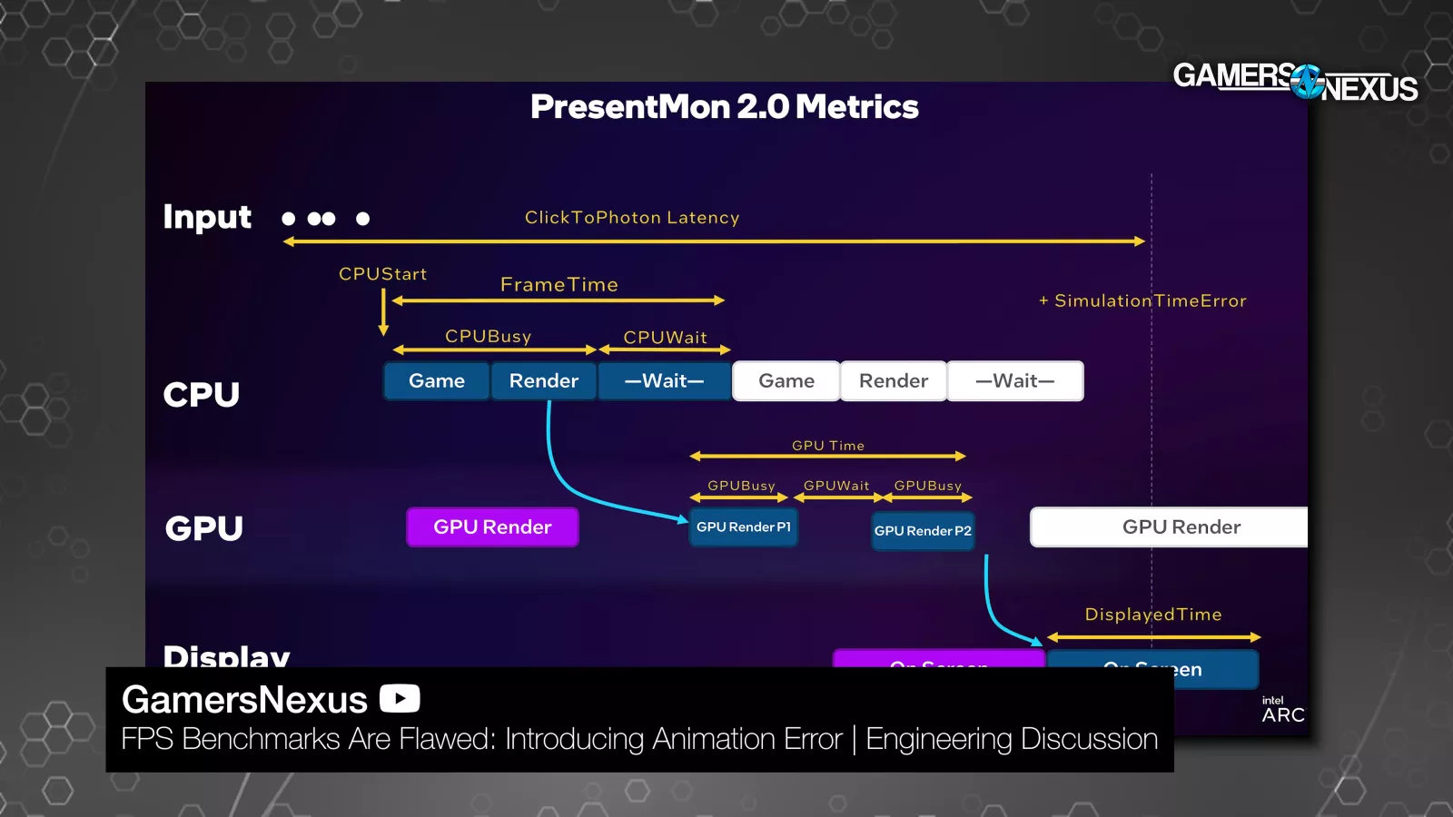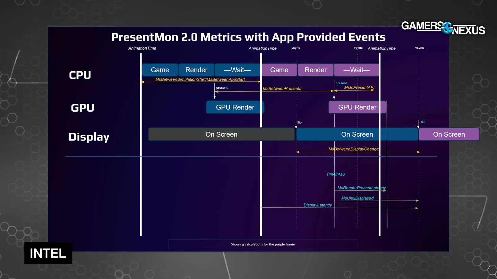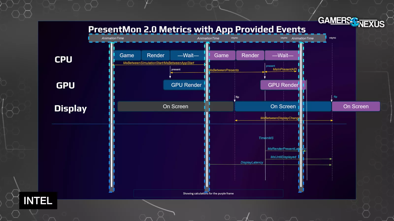 According to Tom Petersen last year, "Today people are mostly using CPUStart as the AnimationTime, which is a pretty good proxy, and that's what we're going to be doing initially. There are explicit APIs, both from NVIDIA and from us [Intel] and others that are allowing game engines or games to tell you that AnimationTime. And so as that becomes more available, we'll be building that into PresentMon."
