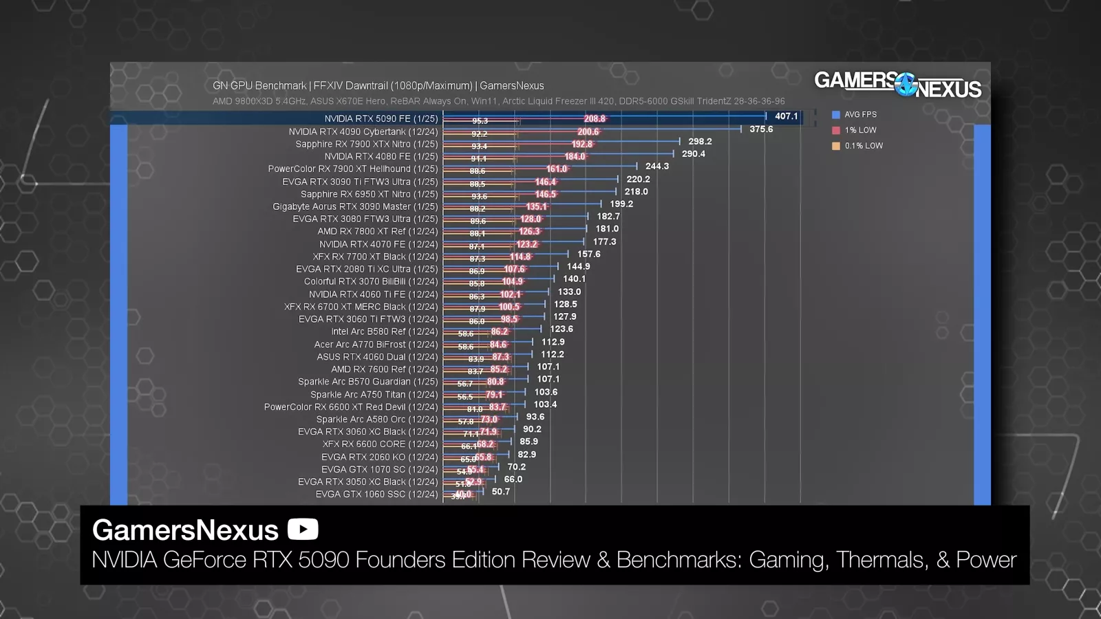 That pushes numbers logged without VSYNC towards the theoretical realm, but no more so than usual: for example, in our launch review, the RTX 5090 averaged a ridiculous 407 FPS in the Dawntrail benchmark at 1080p. That's a comparable performance number, independent of whatever monitor we used, and in that context, that's what we wanted because we want percent scaling between devices.