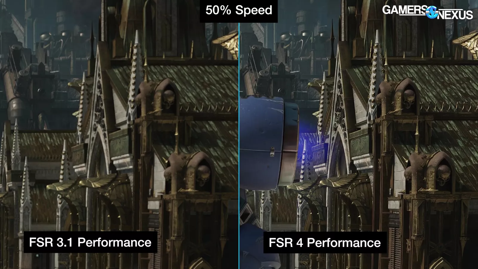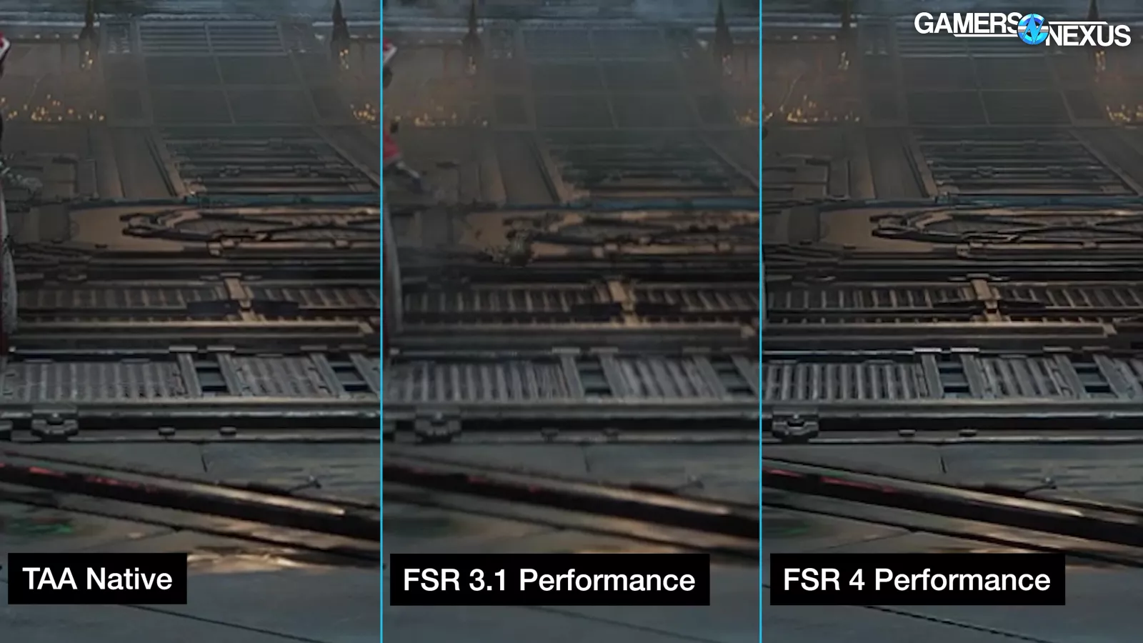 So, we'll be looking at AMD's Fidelity FX Super Resolution version 4 with the new RX 9070 XT (read our review) GPUs and comparing it against the prior version. This is an image quality specific test, and like we said in the NVIDIA coverage of DLSS and MFG, not all fake frames are created fake equal. This will look at that in part. What we're not doing here yet is comparing FSR 4 and AFMF to DLSS and MFG. That might be a later piece if there's interest, but we need to lay the groundwork for each technology independently first.