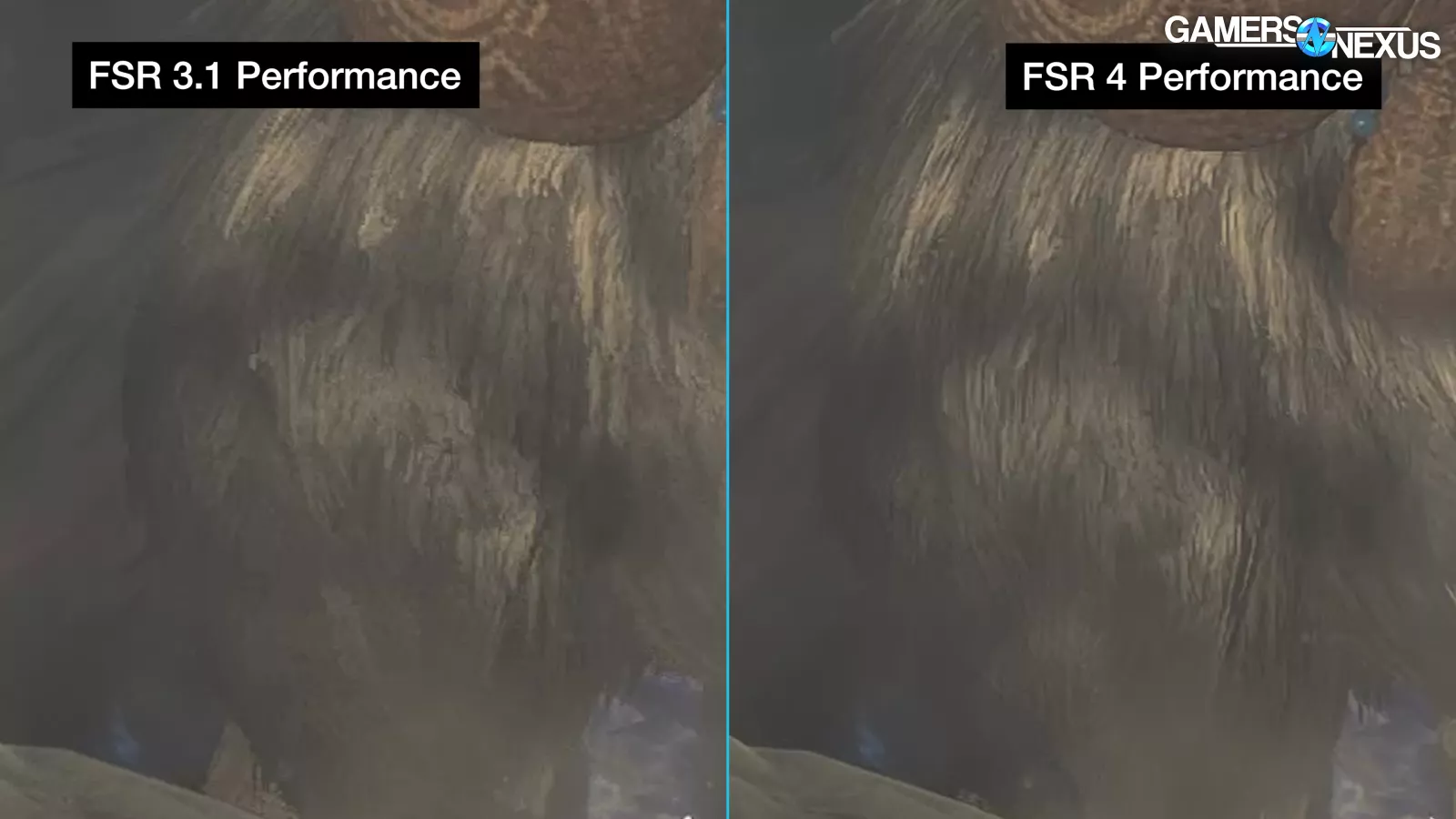 Taking a quick look at the title screen animation shows little difference between FSR 3.1 and FSR 4. Textures and edges are slightly sharper with FSR 4. The stippled effect on fur as seen with FSR 3.1 is also almost entirely gone with FSR 4. There’s not much else to discuss here so we’ll move on.