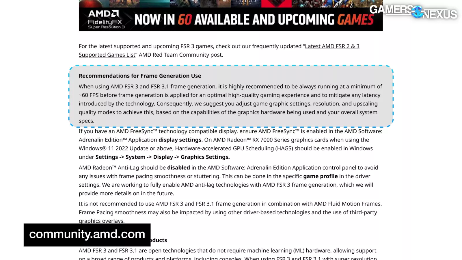 AMD is more direct than NVIDIA about recommending framegen only in scenarios where the game can already run at at least 60FPS, and we stuck to that recommendation.