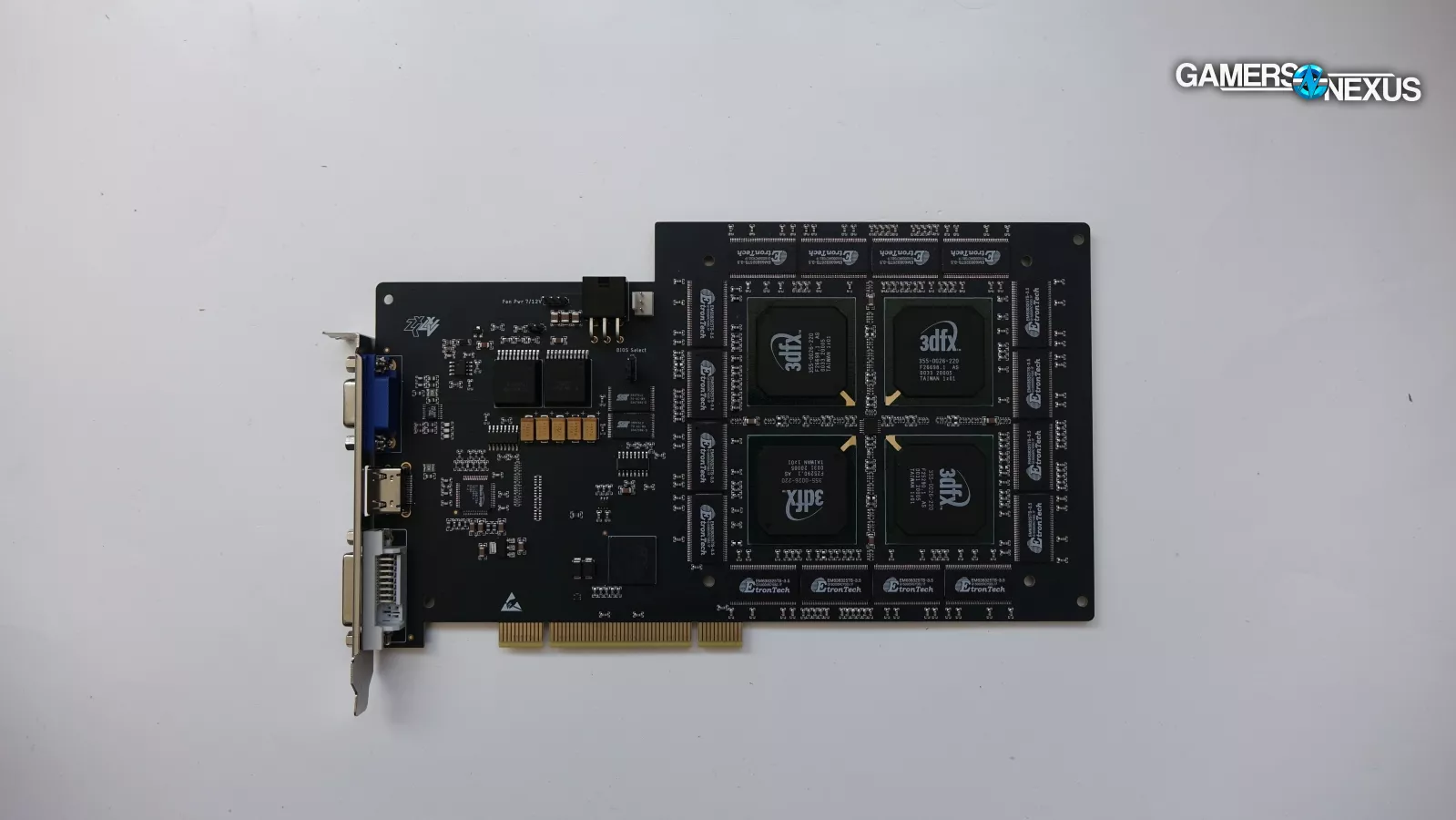 This card shouldn't exist, but we have two. There’s no such thing as a retail 3dfx Voodoo5 6000; they never made it to market. Instead, these cards were created by Anthony ZXCLXIV (ZXC-64). As a hobby, he hand-assembles and sells custom cards, including 3dfx's lost crown jewel. He designs and orders PCBs, then populates them with new old stock 3dfx chips purchased in bulk, usually taking three days to assemble each card. No one has produced a Voodoo5 6000 for over 20 years, and the last people who did never shipped it. Today, we finally get to tell you about this card that we bought from ZXC-64 for about $1500 US.