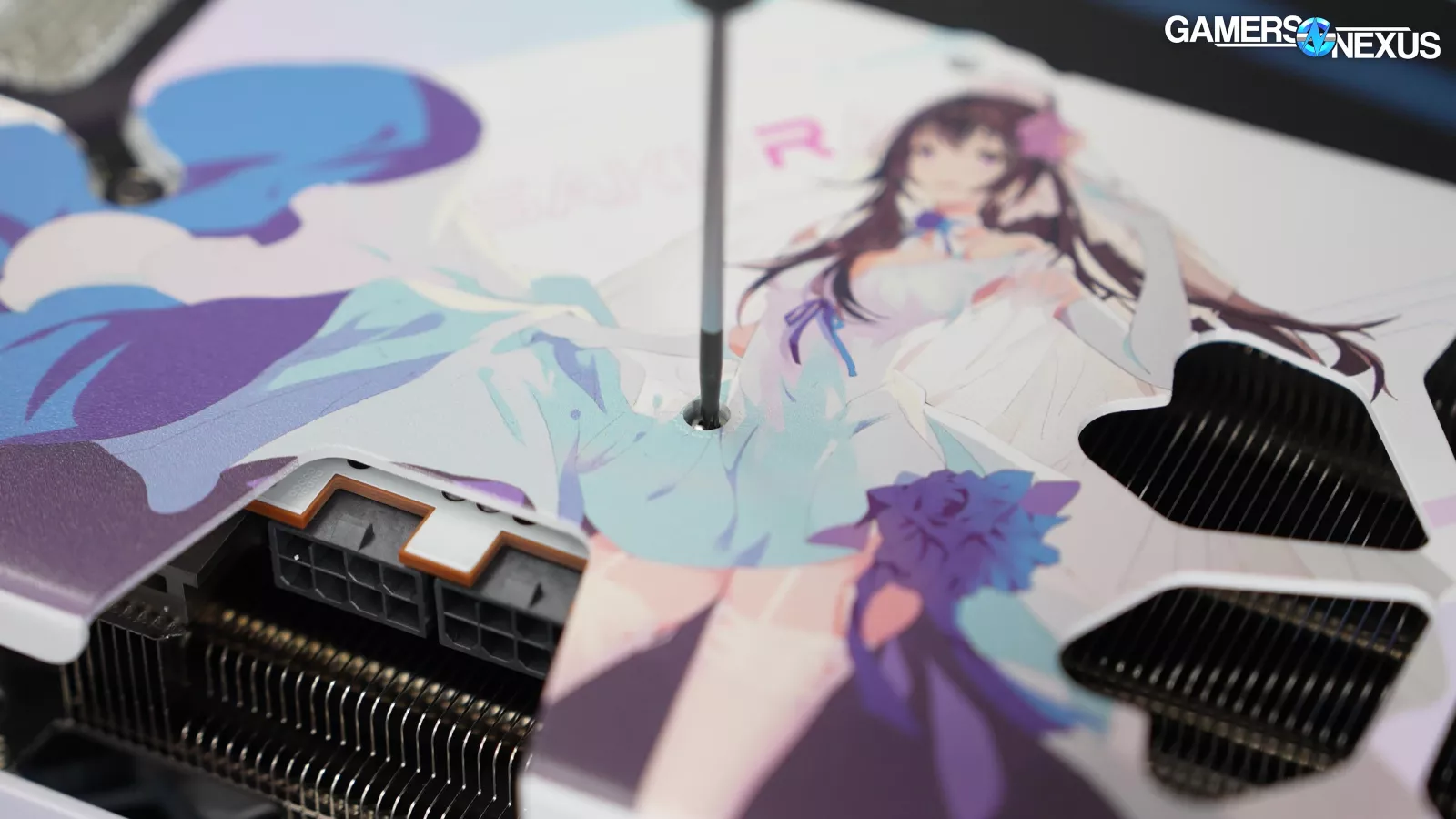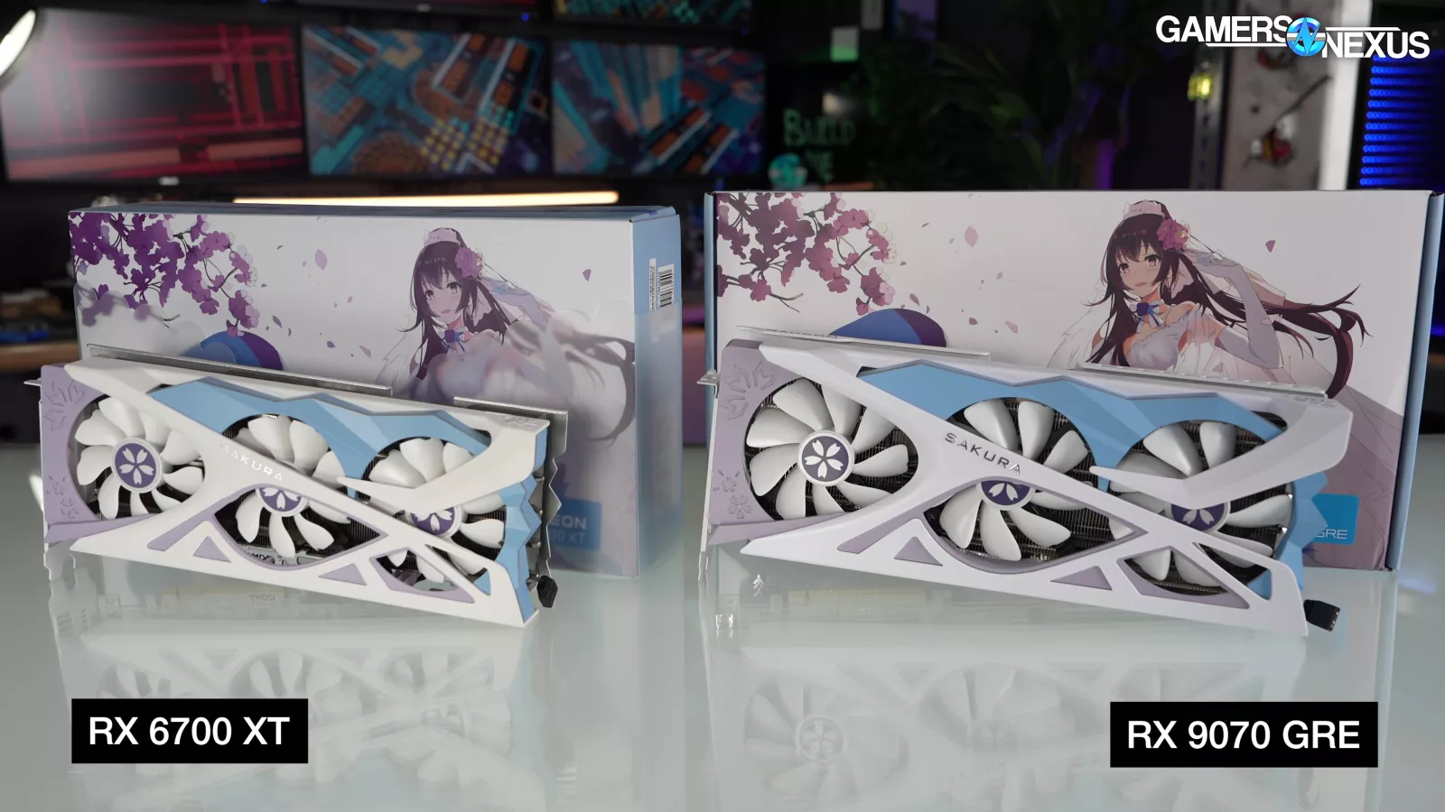 This is the Yeston RX 9070 GRE Sakura Waifu edition. It doesn’t have the scent module that the Sugar Atlantis 9070 XT (read our review) has, sadly, but it does have all the style of the previous Sakura models.