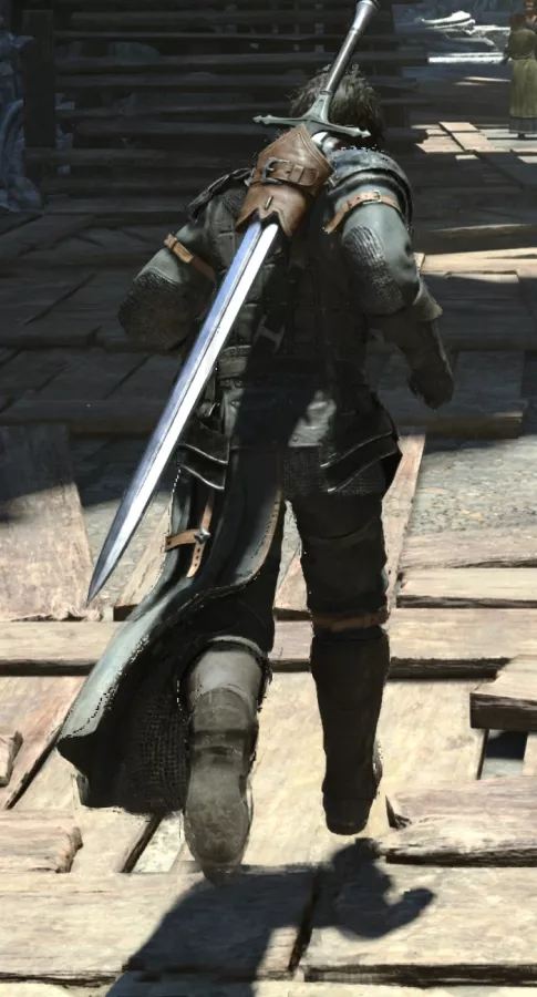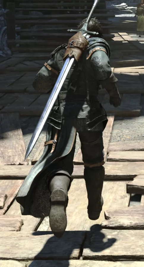 The first scene we’re looking at is when a Dragoon falls out of the sky to fight. As the Dragoon poses against the sky, we see lots of areas of contrast between lit and unlit sections of armor.